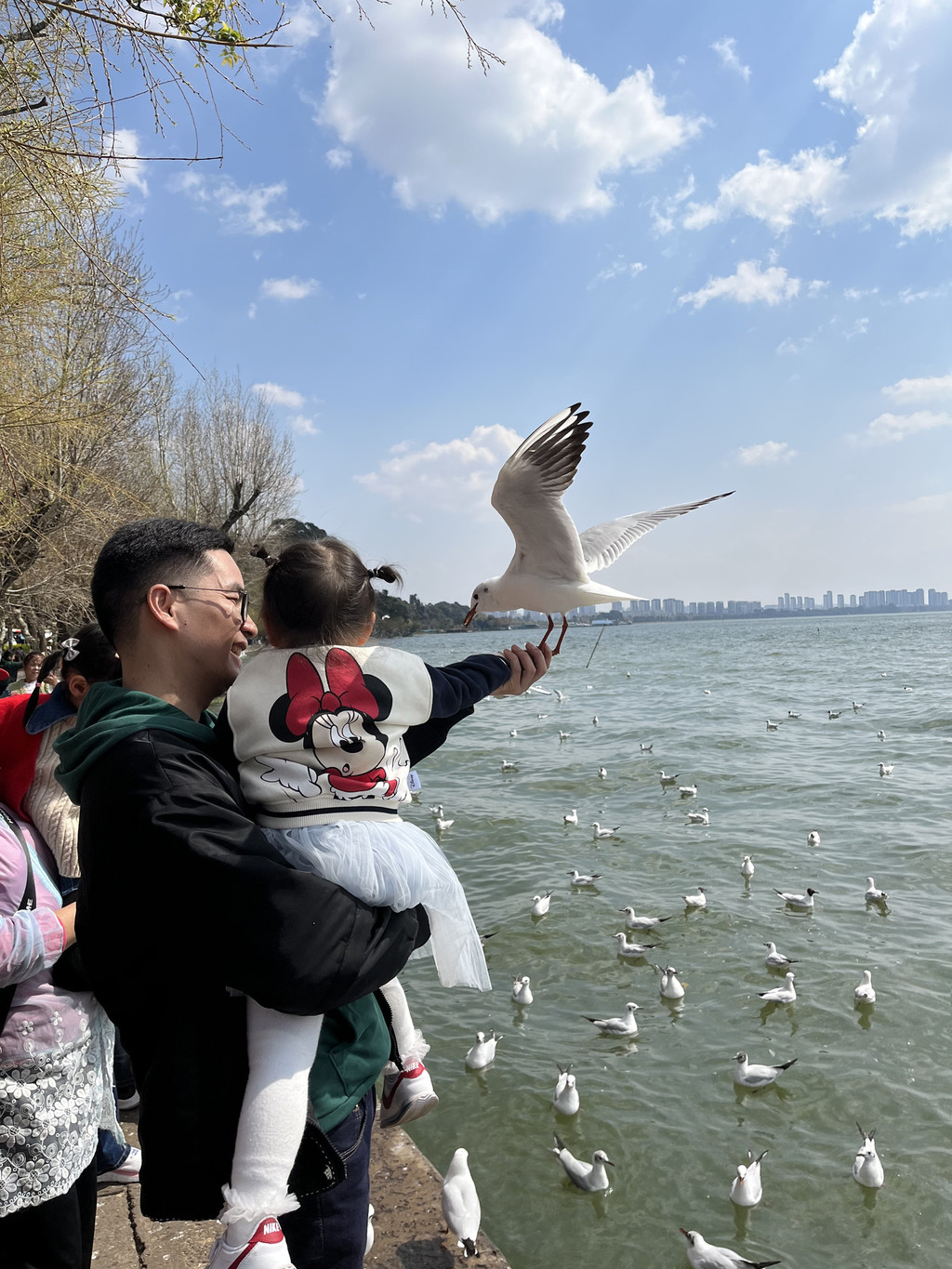 昆明滇池景区,我很震撼15元面包喂不停。孩子们格外喜欢。海鸥飞起来及快速。