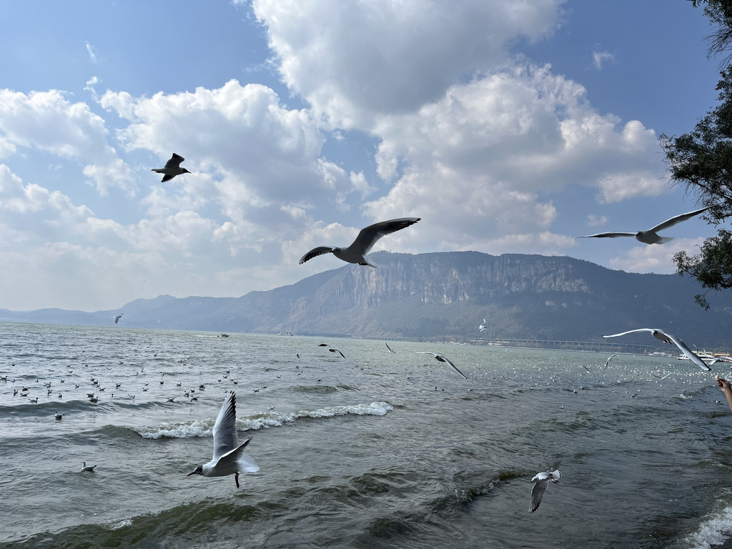 20号 。上午10打车去滇池,赶上喂海鸥,特别解压。