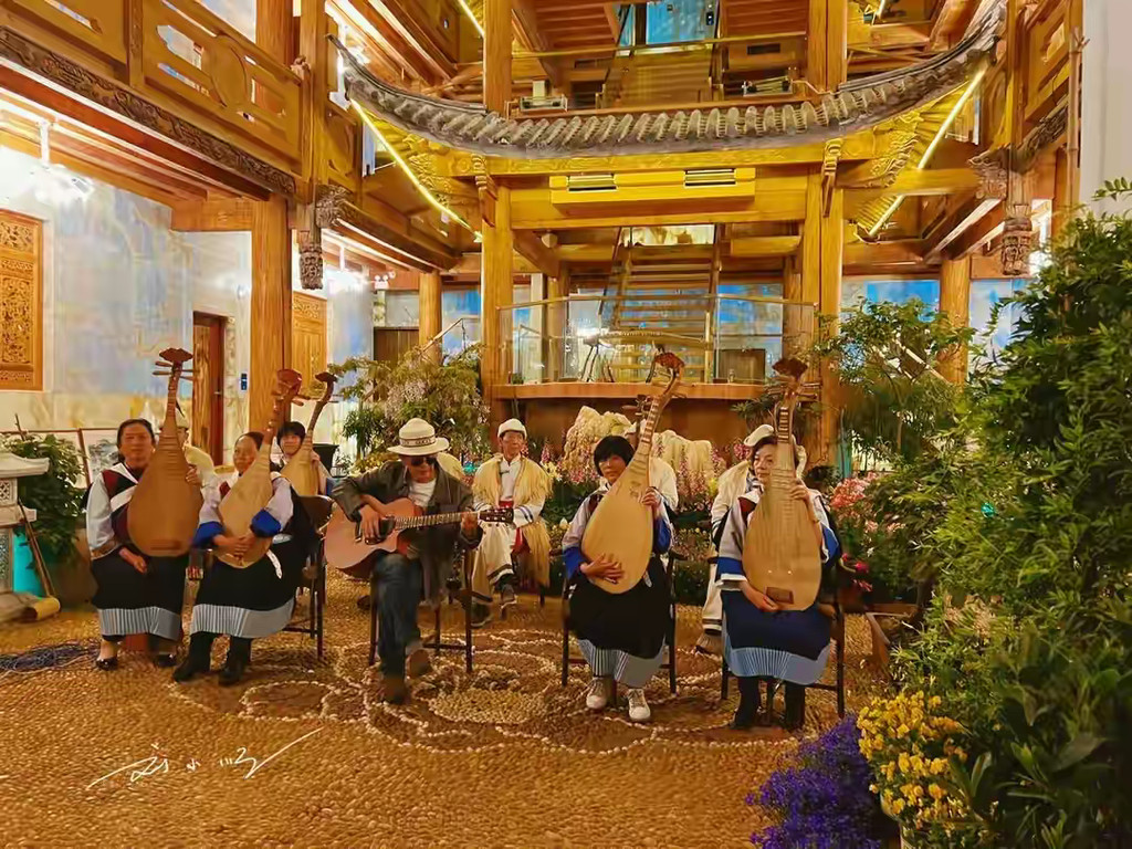并且,“丽江远方客栈”还会不定期举办各种文化艺术活动。你在这里能现场欣赏到当地的传统音乐以及各种传统艺术。