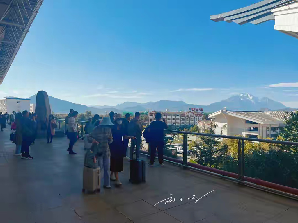 早上我先从广州飞到昆明,再从昆明转高铁来丽江,几乎折腾一整天,抵达丽江时,就已经快要傍晚时分,好在天气不错,万里无云,一出高铁站就看见了远处的玉龙雪山。