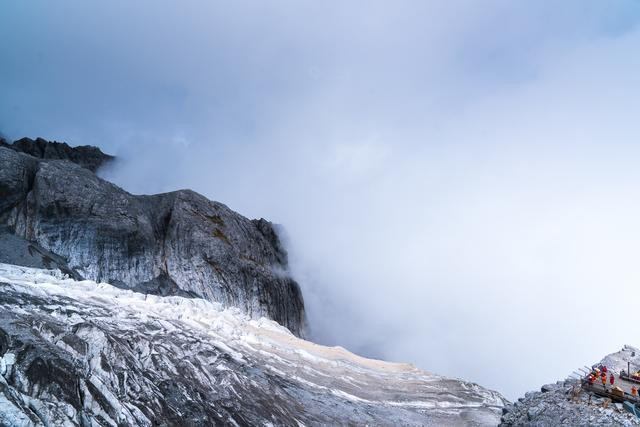 玉龙雪山 甘海子:曾经海子成了草甸,低矮的松树,未名的黄花,游览拍照十分钟足矣。 在甘海子可看到玉龙雪十三个峰依次排开,是仰视玉龙雪山全貌最近的的地方,可惜只在云雾中。