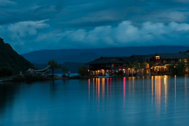 扎西带我们去吃摩梭家宴,过后去参加篝火晚会,老婆说太热闹,我们出去走走吧 夜晚的泸沽湖很安静,如果是夏夜,是不是能够拍到一片星空呢?