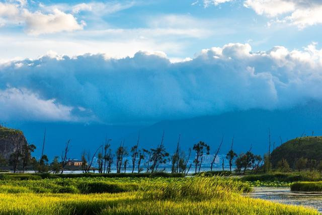 草初黄,叶刚落,自然的色彩 云很低,天很近