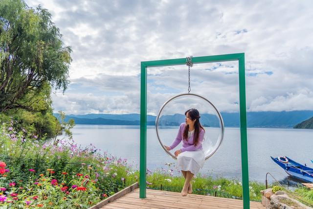 泸沽湖 三家村到蒗放这一段有栈道,游人很少,当天,格姆女神山几乎一直藏在云中 不过就算我们看不见女神山的全貌,我也能看见我的女神,也就是我媳妇哈哈