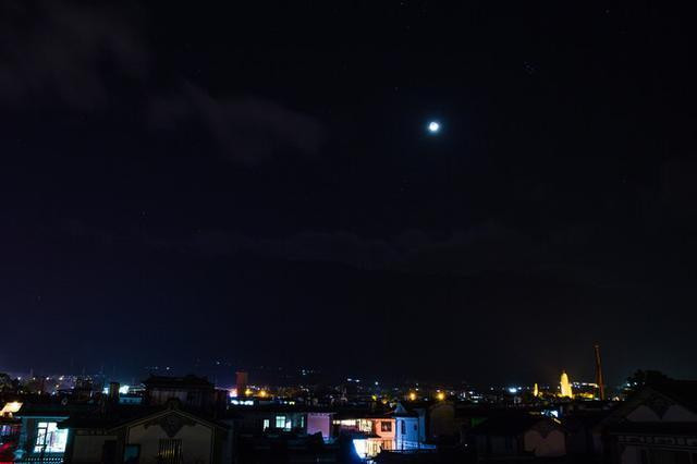 那晚,你早早睡了,我在青旅的屋顶眺望远处的夜色。 远处的灯火依然明丽,还能看见著名的崇圣寺三塔。原本是想,就这样悠闲地坐着,在宽敞的屋顶看看星星,无奈周边繁盛的光亮,映得天空只剩下明星点点。 也难怪,月明星稀,幸好伴着我的,还有一轮皎洁的明月,和温柔的晚风。 我想起好妹妹那首《晚风》,他们这样唱着:温柔的晚风,轻轻吹过,爱人的梦中;温柔的晚风,轻轻吹过,故乡的天空;温柔的晚风,轻轻吹过,城市的灯火;今夜的晚风,你去哪里,请告诉我。