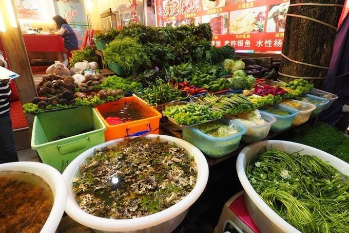 这家门口有特别多菜可以选择,海菜花、水性杨花、还有很多野菜门面相当不错