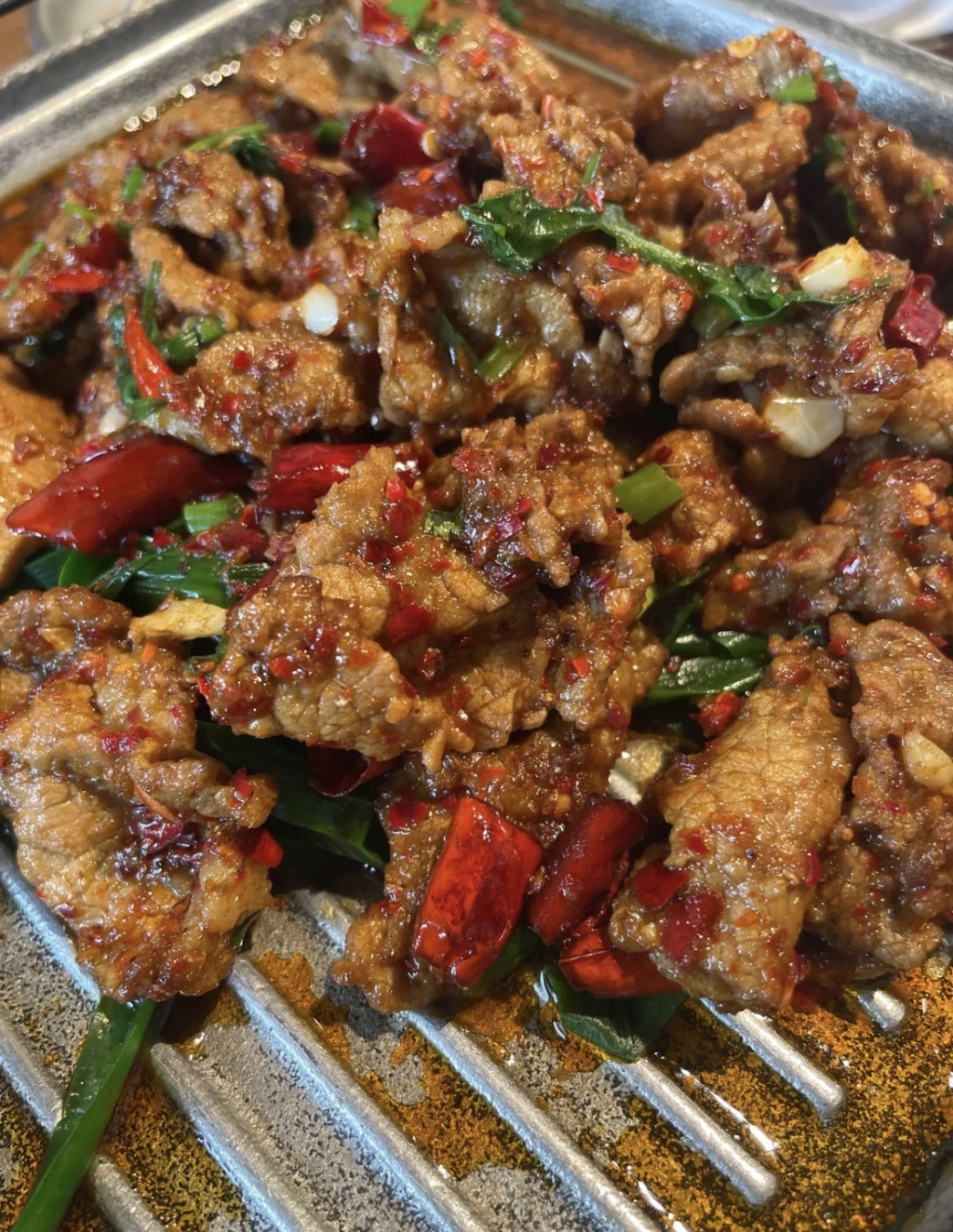 口感很好有一些辣牛肉下面垫的韭菜很好吃我用这个菜拌小锅饭一起哇哦~