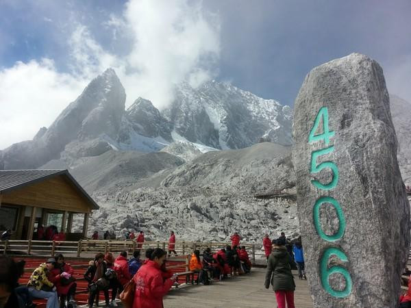 有位游客在吸氧,雪山的海拔有点高,我们所处的冰川公园的平台海拔有4506米,对于沿海 和平 原来的朋友最好报个团,我报多米家的团里包含了氧气和衣服,这个很有必要。还好报了团,自己来的话,准备不充分就会把这些细节给漏了~~