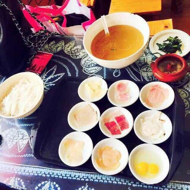 第一站 我们去的是“建新园”吃云南最著名的过桥米线。 过桥米线有18-128元/碗 不等的价格 我们吃的是35元/碗的过桥米线 过桥米线很多吃的讲究,要先放肉片,蔬菜等配料到鸡汤里。 不过很少蛮好吃的呢。