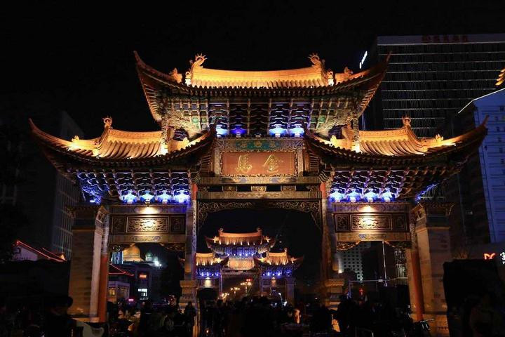 第四站 金马碧鸡坊/南屏步行街 这两个地方是昆明是的市中心 两个地方就在一起 所以大家可以这两个地方一起玩儿 今天晚上得晚餐我们也打算就在这里吃了的呢 这里的话我查了挺多攻略 我会建议大家晚上到这里游览 晚上得夜景很漂亮的呢 晚餐我们吃的傣族菜,人均60元/人