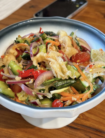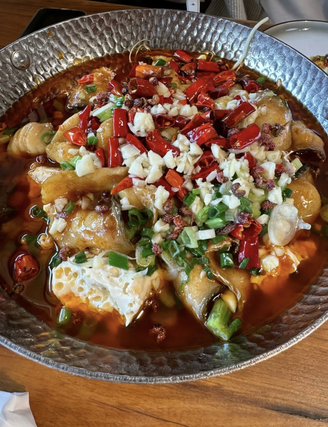 纳西手工豆花鱼鱼肉很嫩,个人觉得微微辣,有点小刺,里面配料看起来也很有食欲,豆花没有入味,不过吃起来口感不错,爱吃鱼的这道菜可以冲