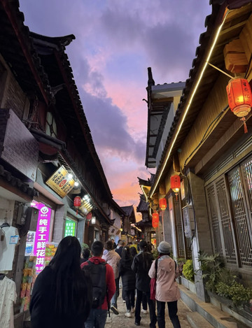 没拍多少图片,去的时候已经晚上10点了。很多地方比不上丽江古城,可以作为去丽江古城的中转站。门口摆摊的地方特别多,还有卖景区衣服的,可以讲价,老板一开始喊120,最后80成交。出片的地方挺多的,可以去拍照。