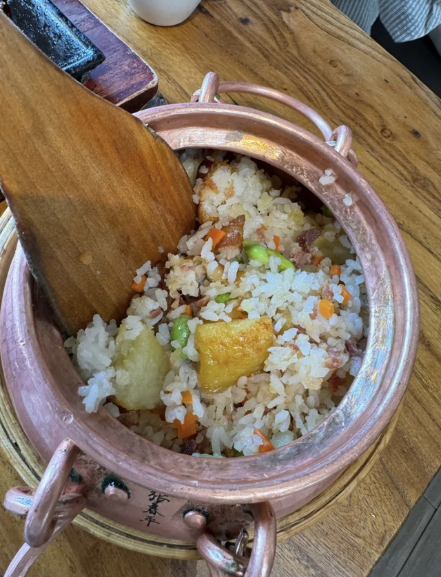 招牌小锅饭,我朋友说像扬州炒饭哈哈哈哈哈,味道比较清淡,我俩很喜欢吃土豆,这边的饭里面都会有洋芋,爱吃