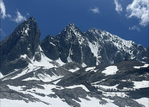 天气好时候,游客可以坐缆车到4560米的高度,再通过栈道步行至4680米的高度,后面就不能再继续往前了,5596米的玉龙雪山至今无一人登顶,当地人也不让登顶。