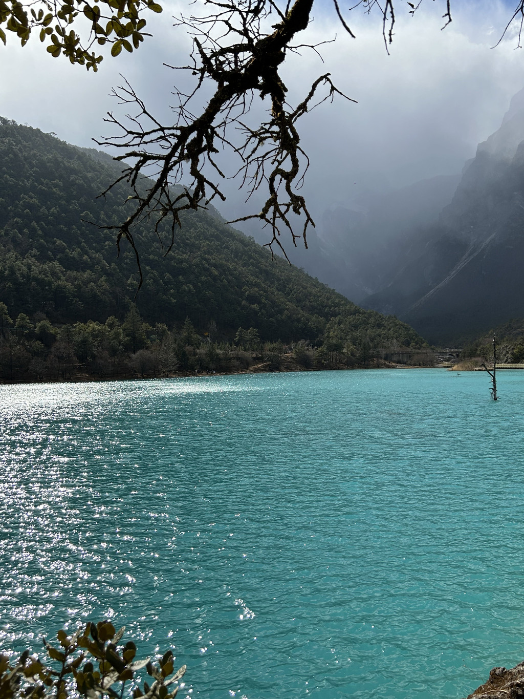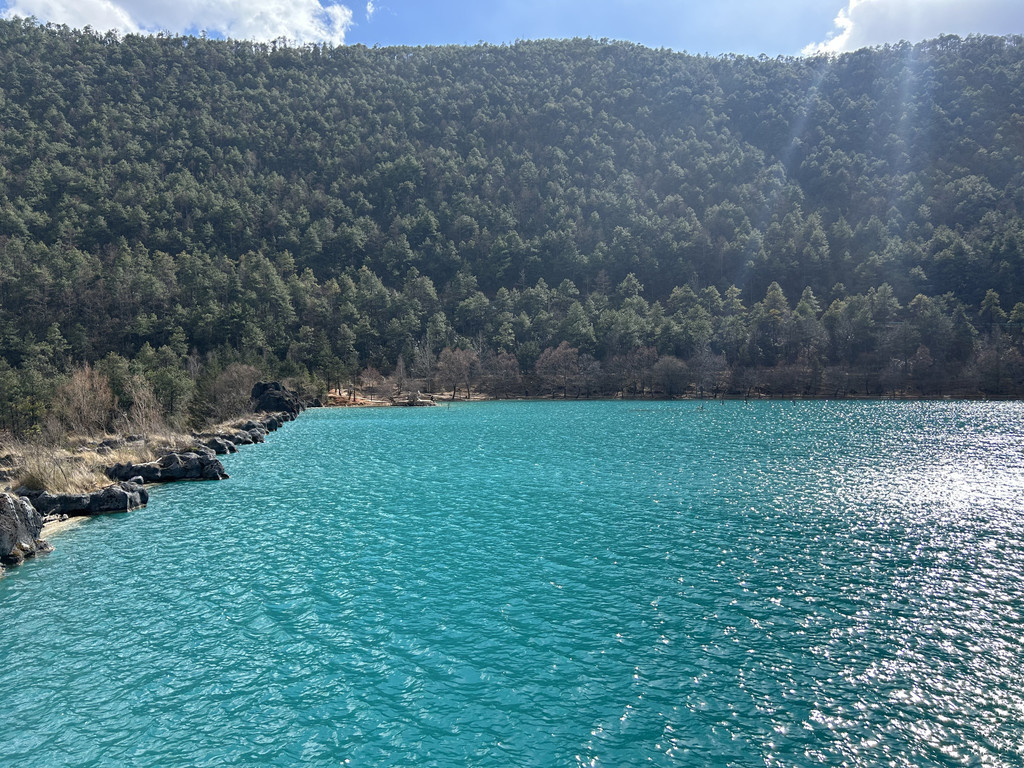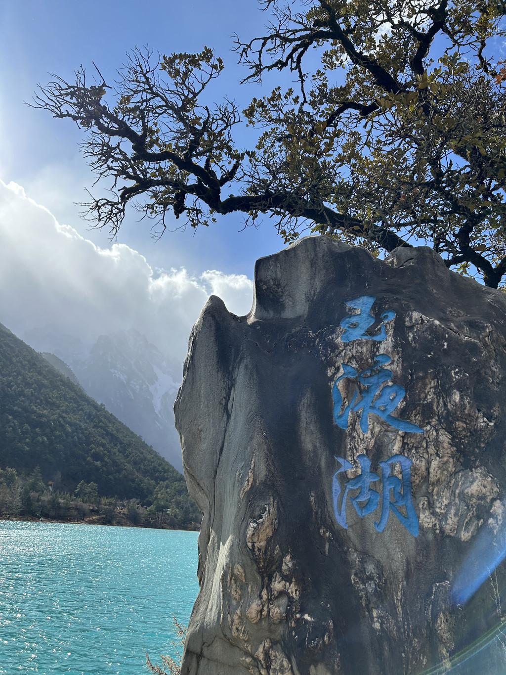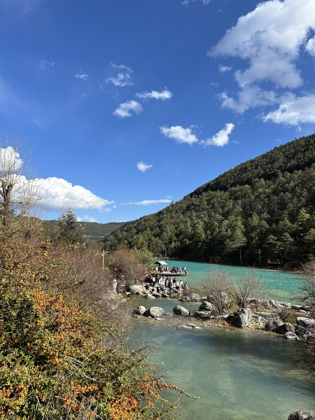 蓝月谷中的河水在流淌过程中因受山体阻挡,形成了四个较大的水面,人称“玉液”湖、“镜潭”湖、“蓝月”湖和“听涛”湖。这段的景色很美。湖水清澈,雪山倒影……感觉就像走进了九寨沟,这里的宁静与和谐,让我心旷神怡,使自己很快找到了内心的平静与安宁。