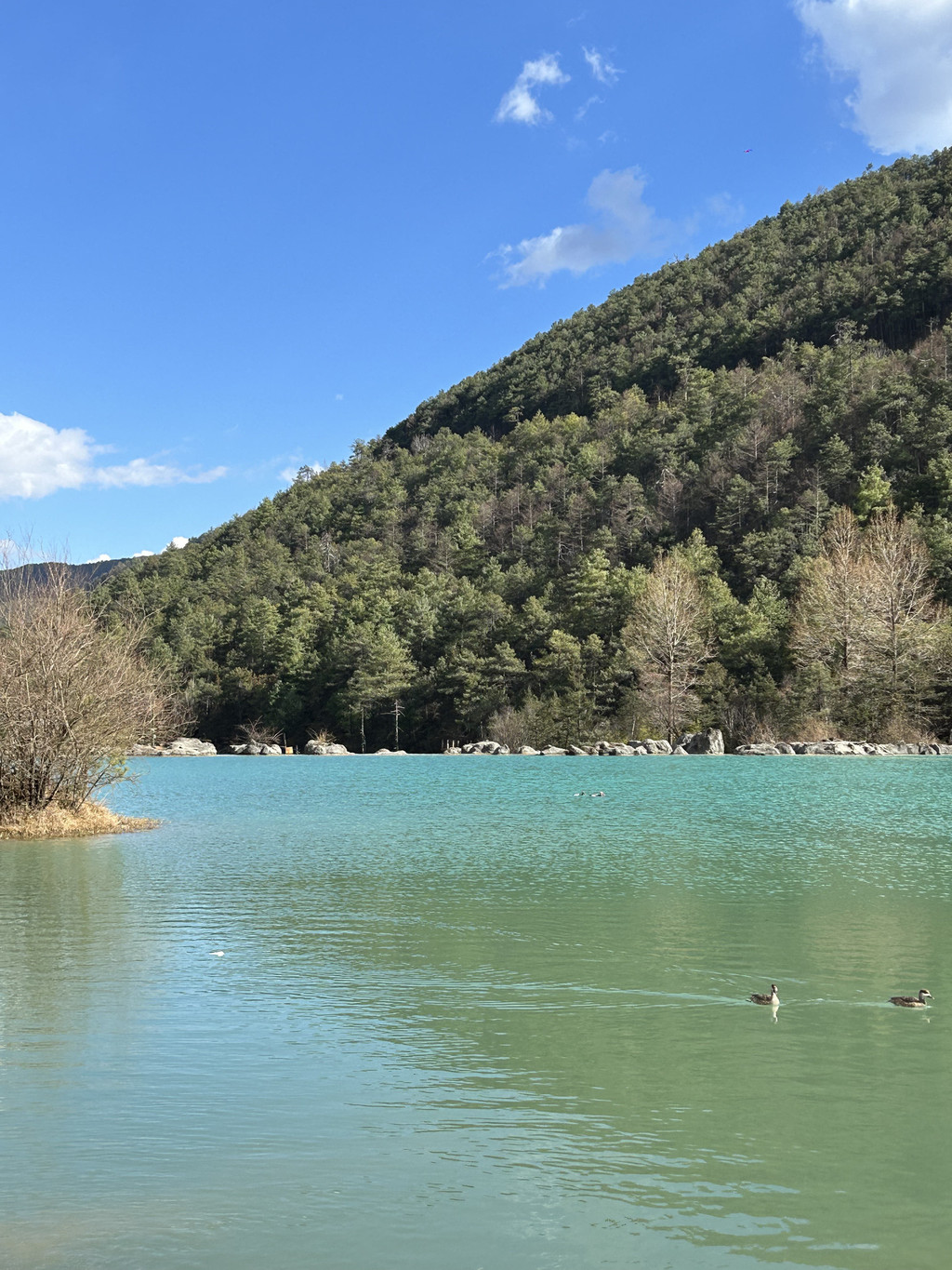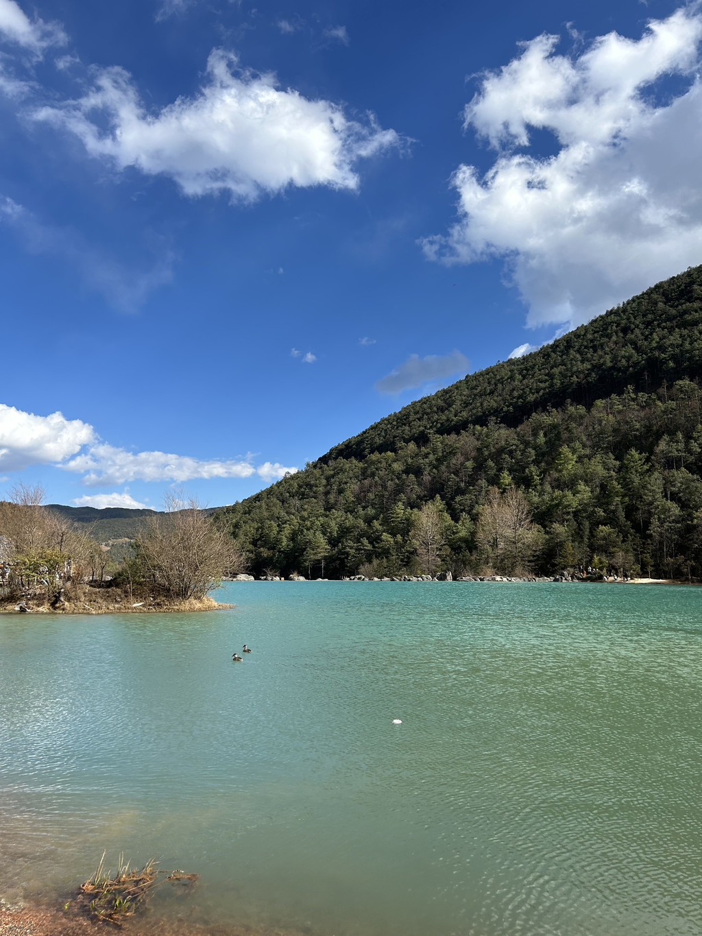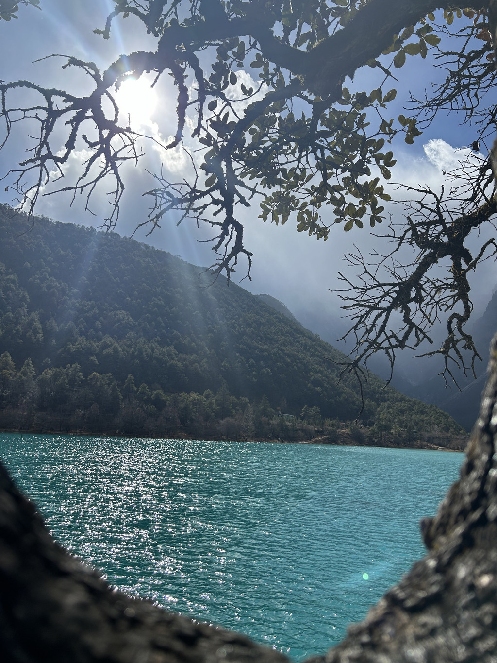 蓝月谷中的河水在流淌过程中因受山体阻挡,形成了四个较大的水面,人称“玉液”湖、“镜潭”湖、“蓝月”湖和“听涛”湖。这段的景色很美。湖水清澈,雪山倒影……感觉就像走进了九寨沟,这里的宁静与和谐,让我心旷神怡,使自己很快找到了内心的平静与安宁。
