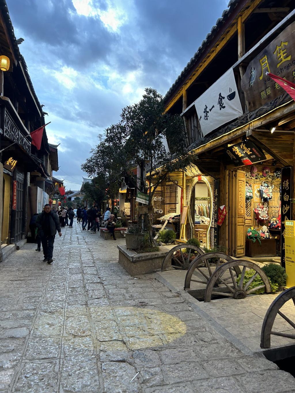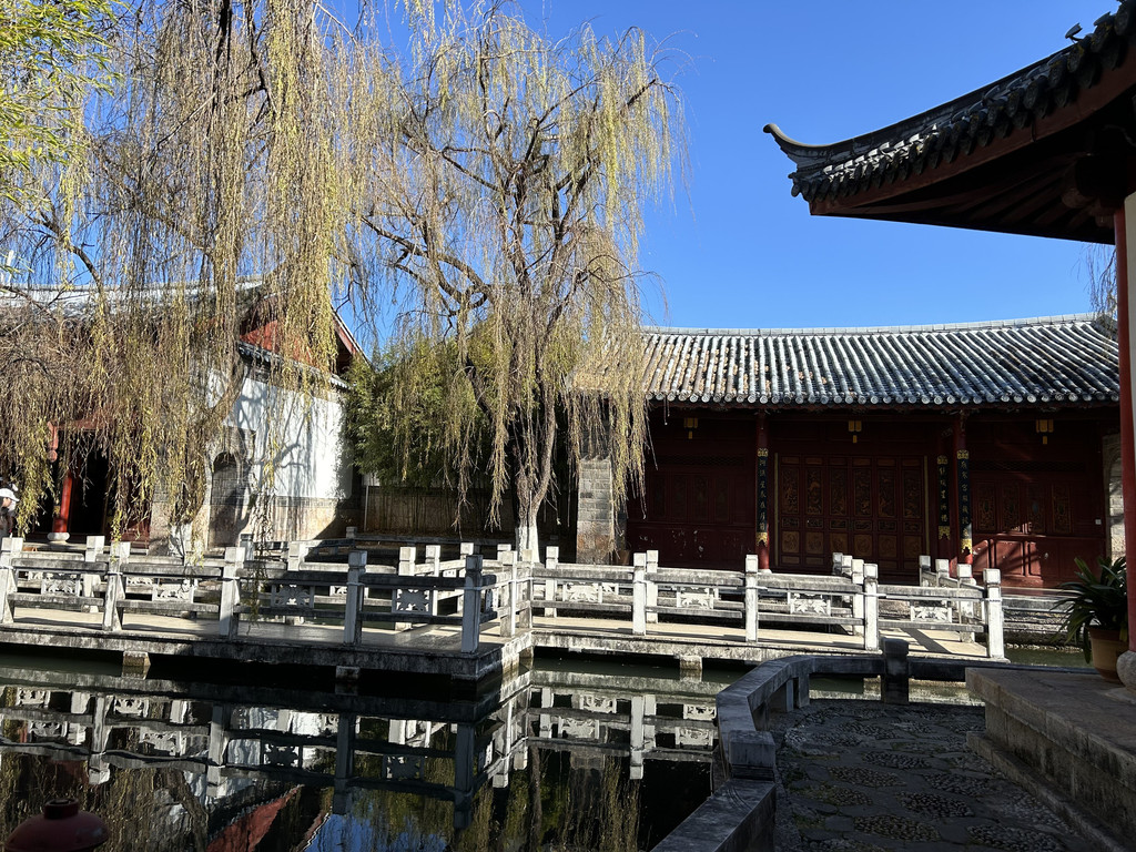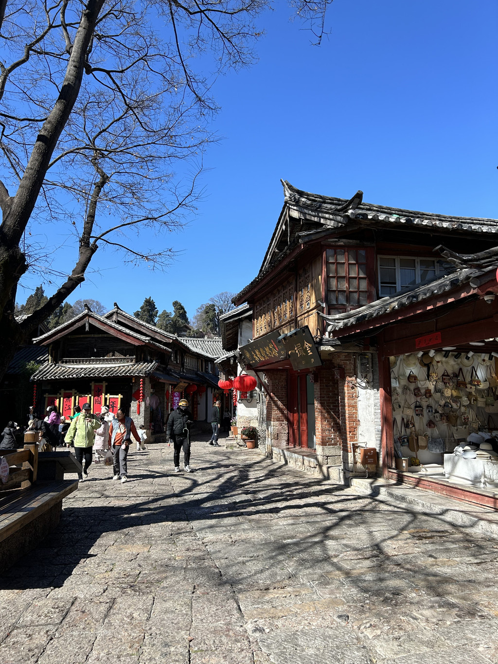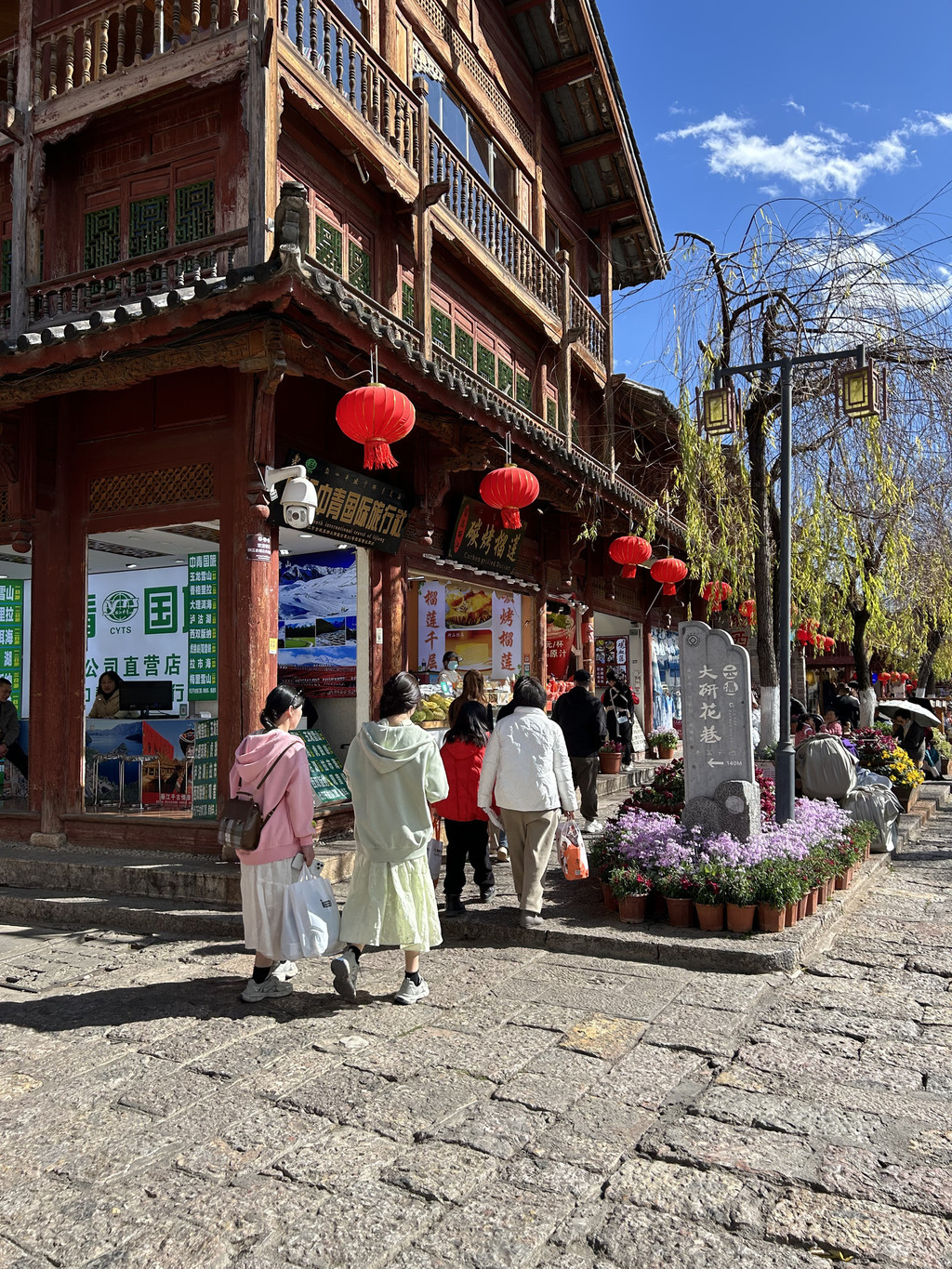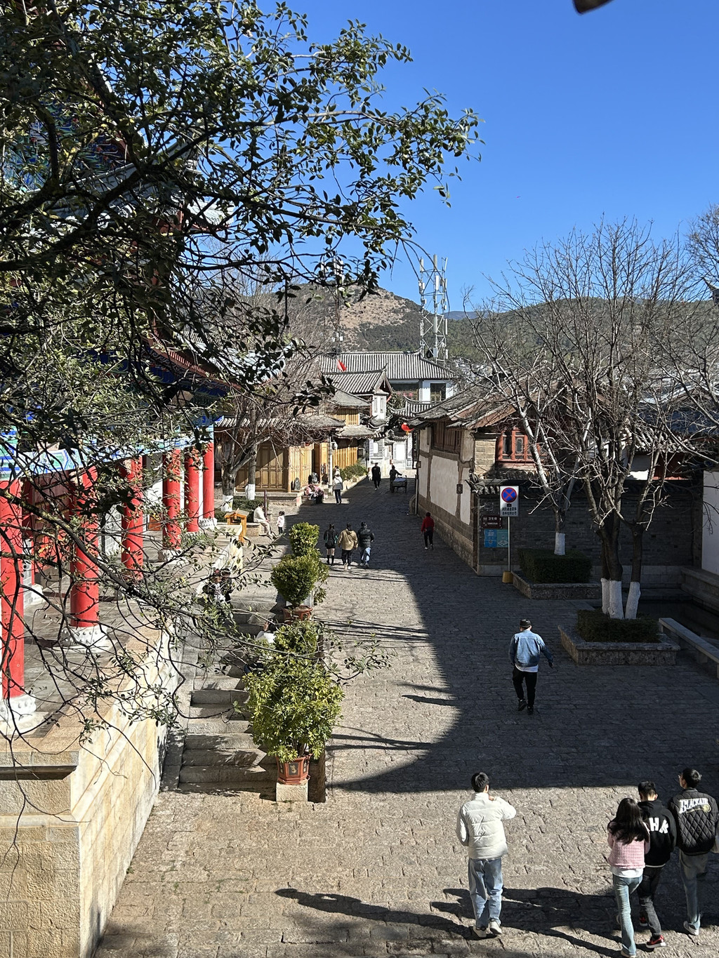 从木府出口出来,首先映入眼帘的是“天雨流芳”木牌坊,“天雨流芳”是纳西语“读书去吧”的谐音,可见木氏土司还是很重视文化教育。