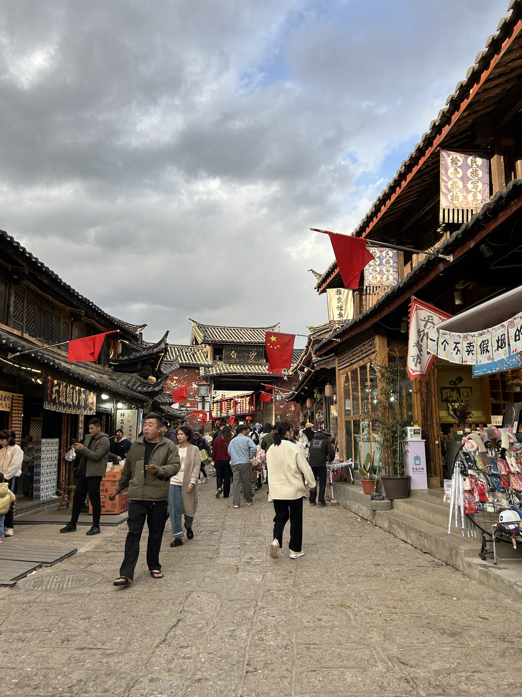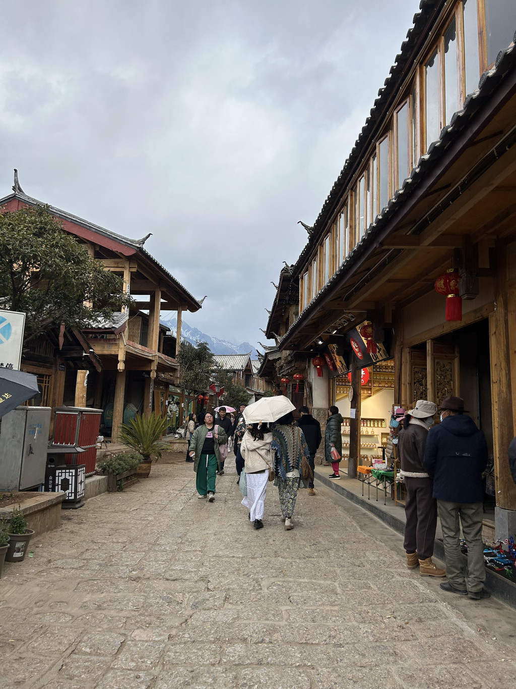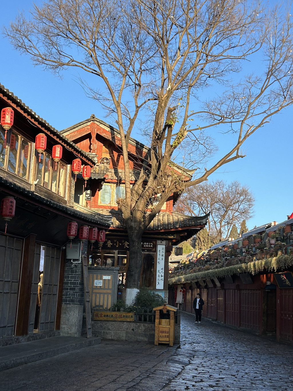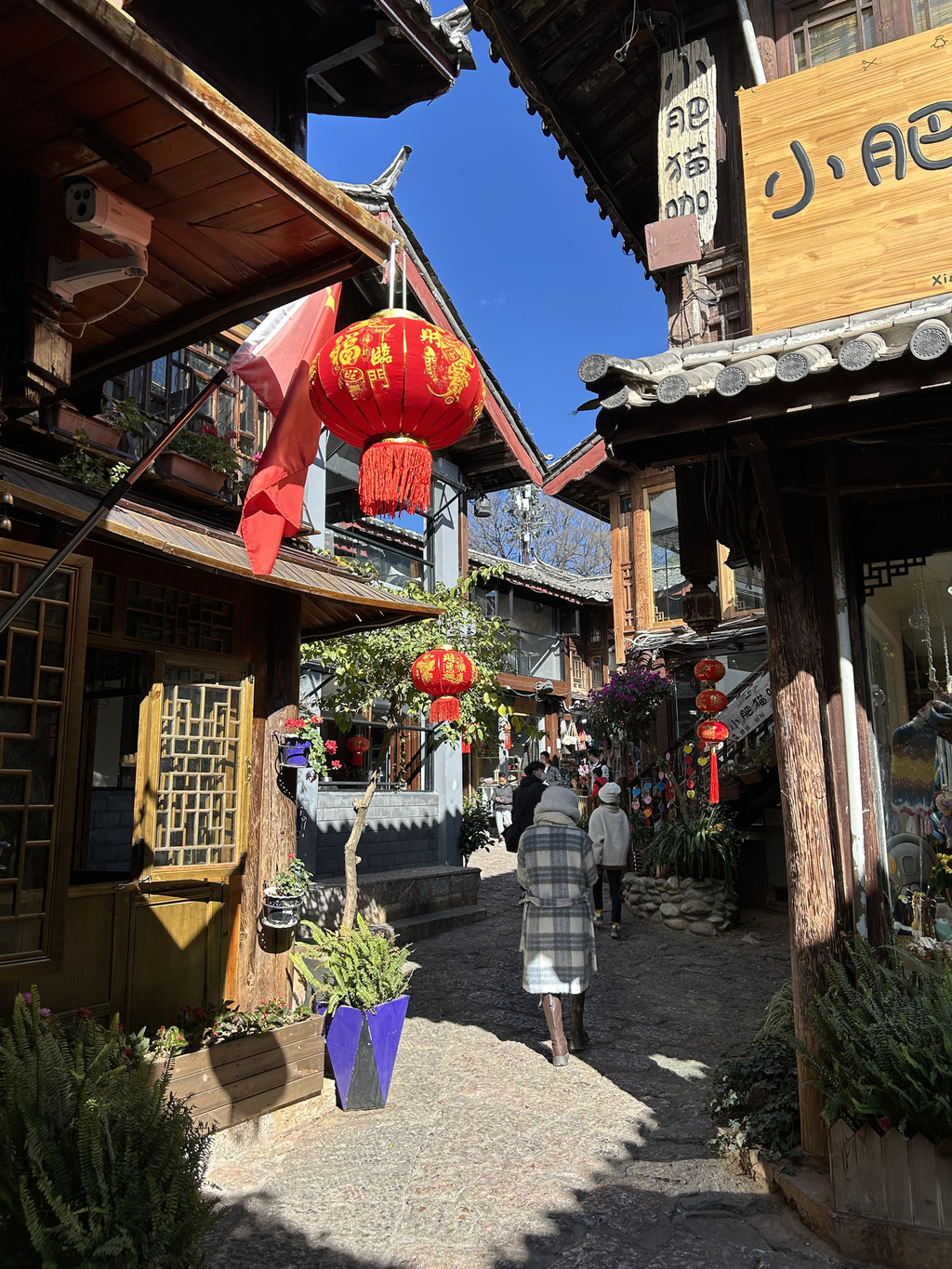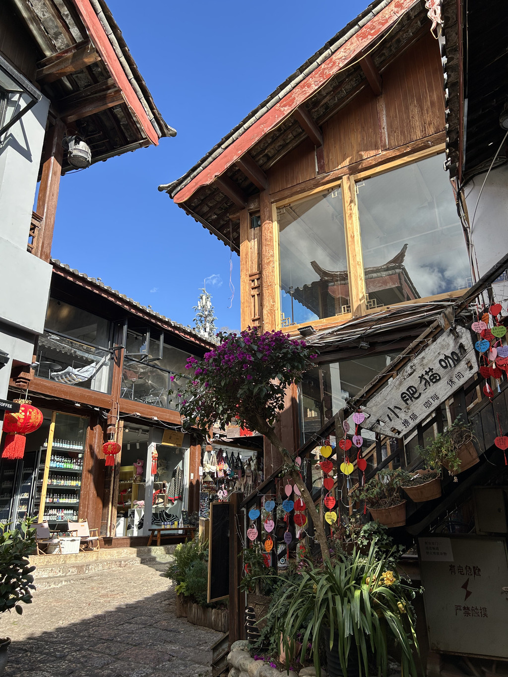从木府出口出来,首先映入眼帘的是“天雨流芳”木牌坊,“天雨流芳”是纳西语“读书去吧”的谐音,可见木氏土司还是很重视文化教育。