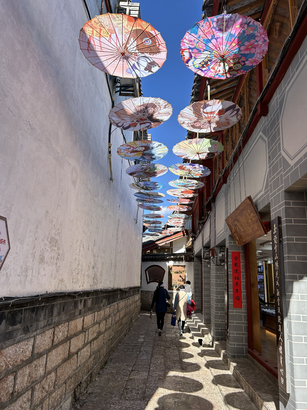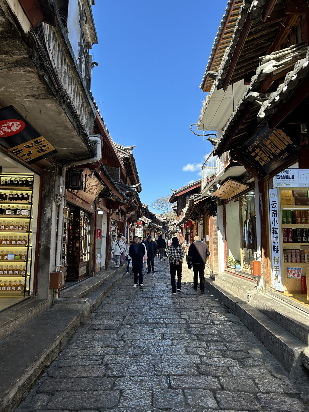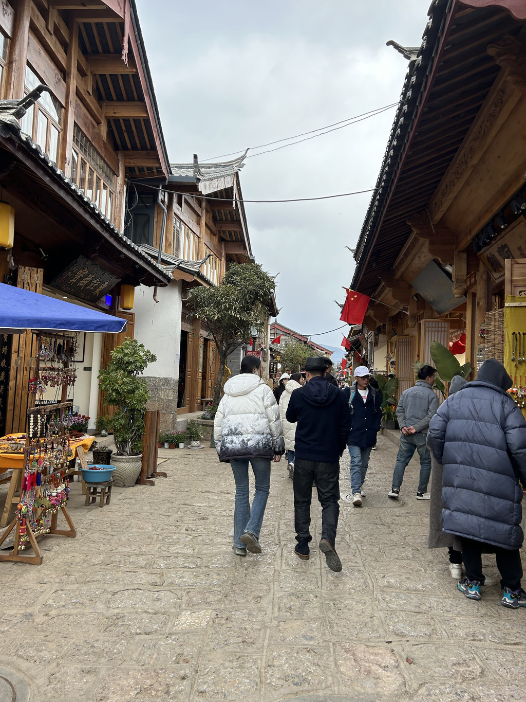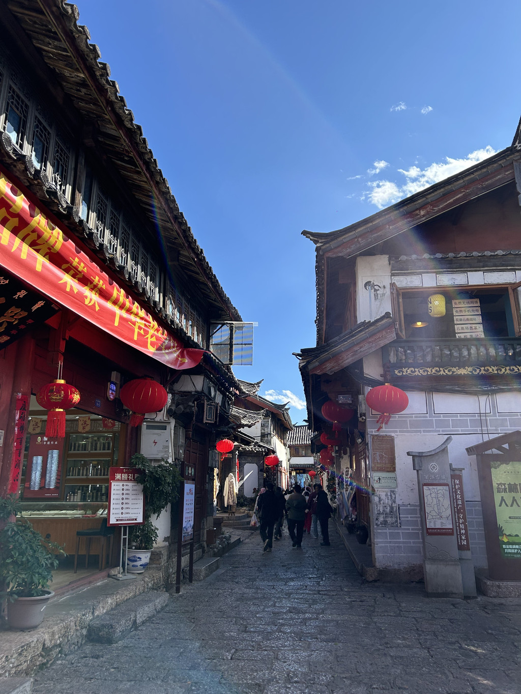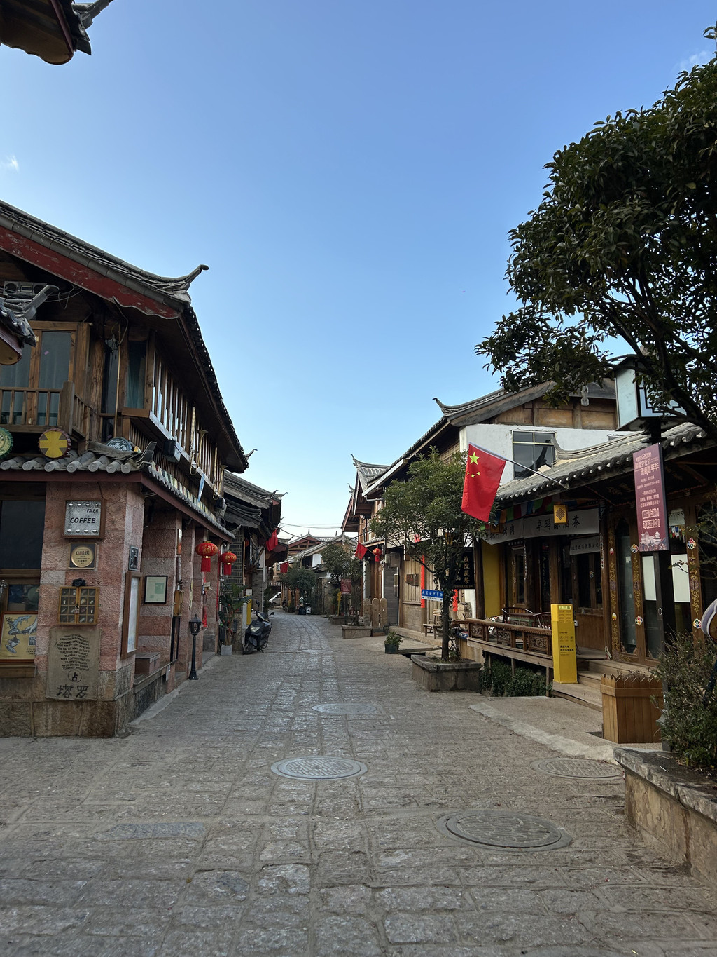从木府出口出来,首先映入眼帘的是“天雨流芳”木牌坊,“天雨流芳”是纳西语“读书去吧”的谐音,可见木氏土司还是很重视文化教育。