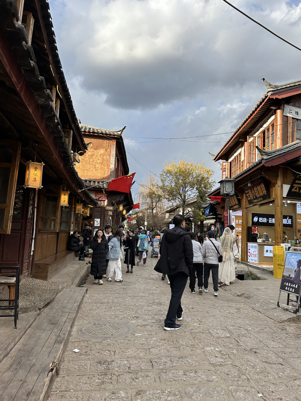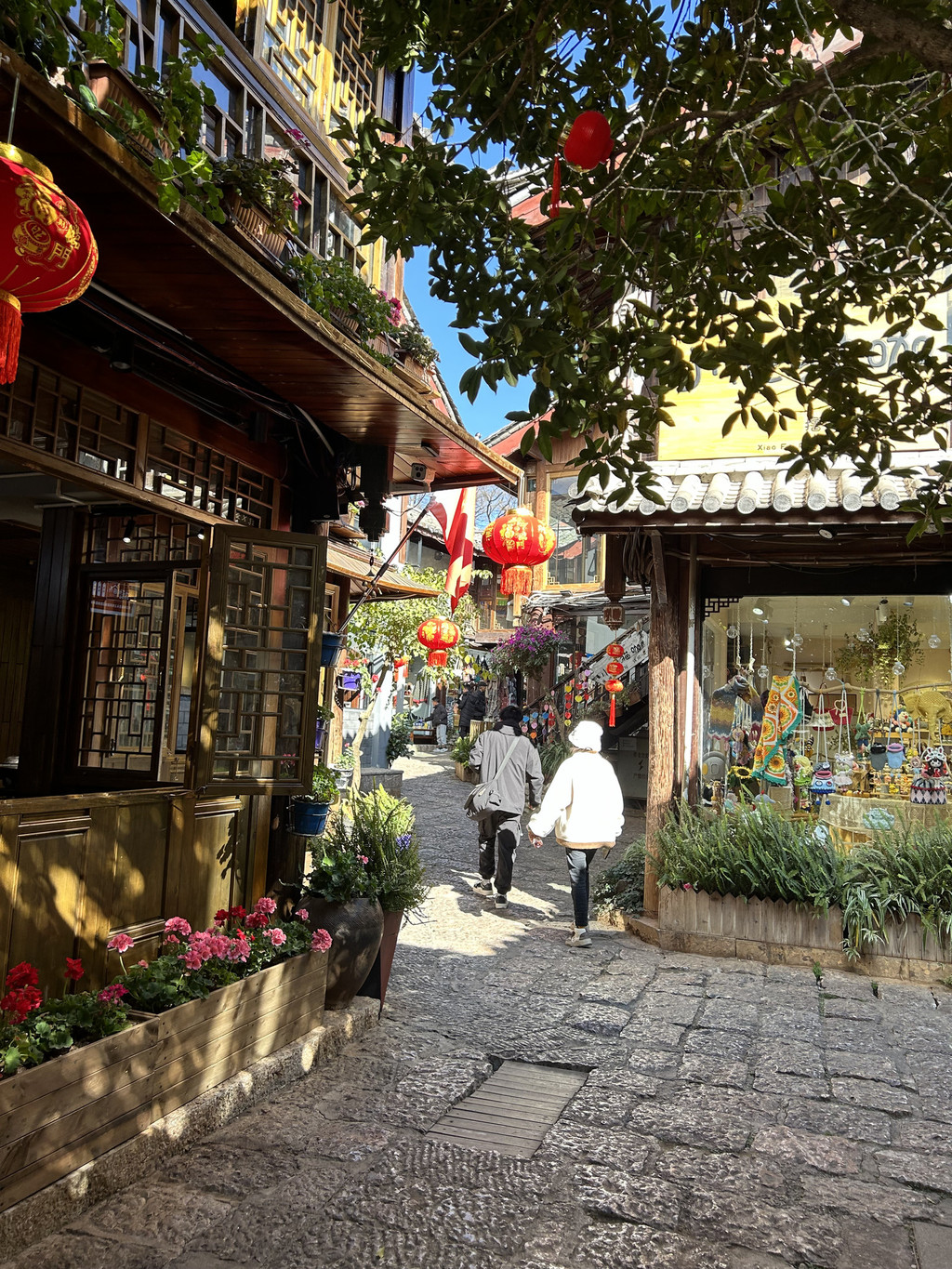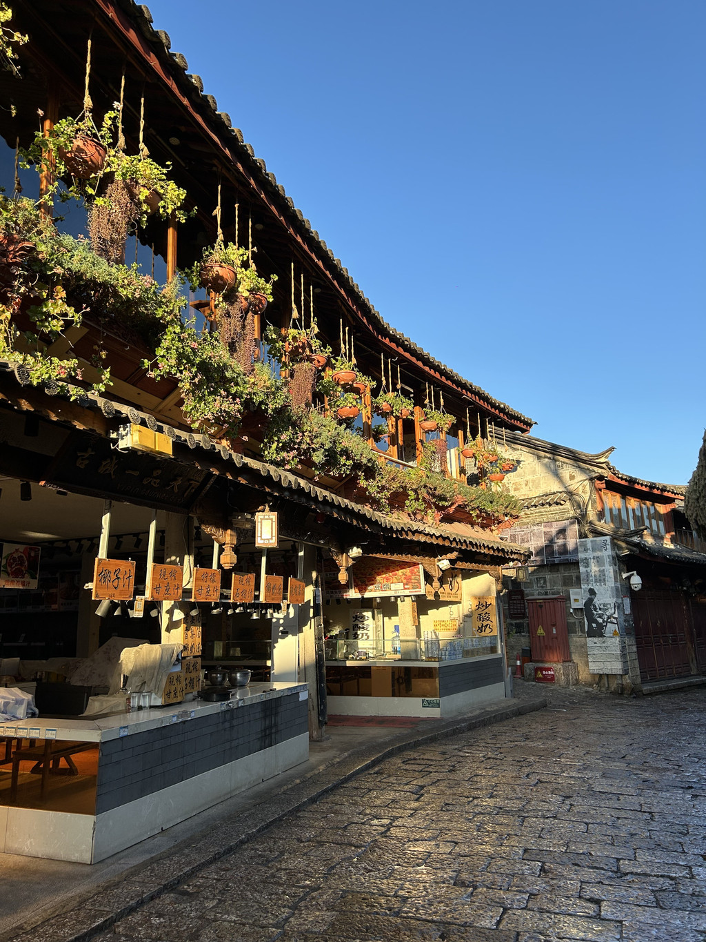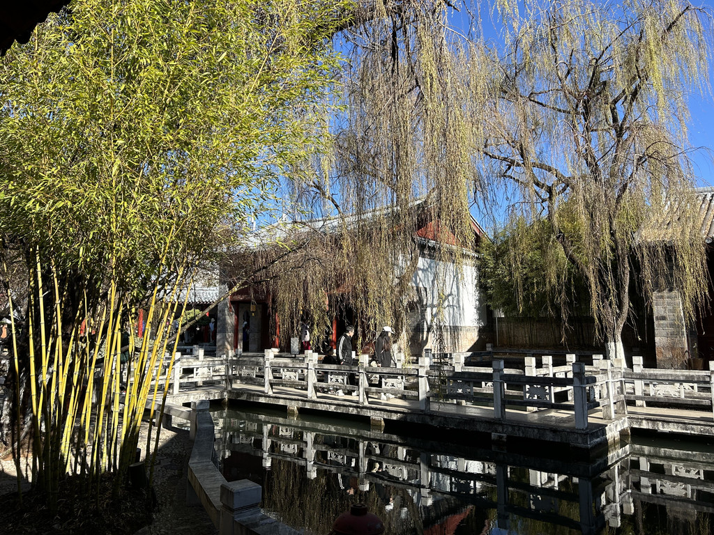 漫步在古城的街道上,眼前呈现出一幅古朴,典雅,幽静的画面。纳西风格的民居鳞次栉比,清清的溪流穿城过巷,一座座小桥如彩虹横跨小溪,排排垂柳在清风中摇弋。