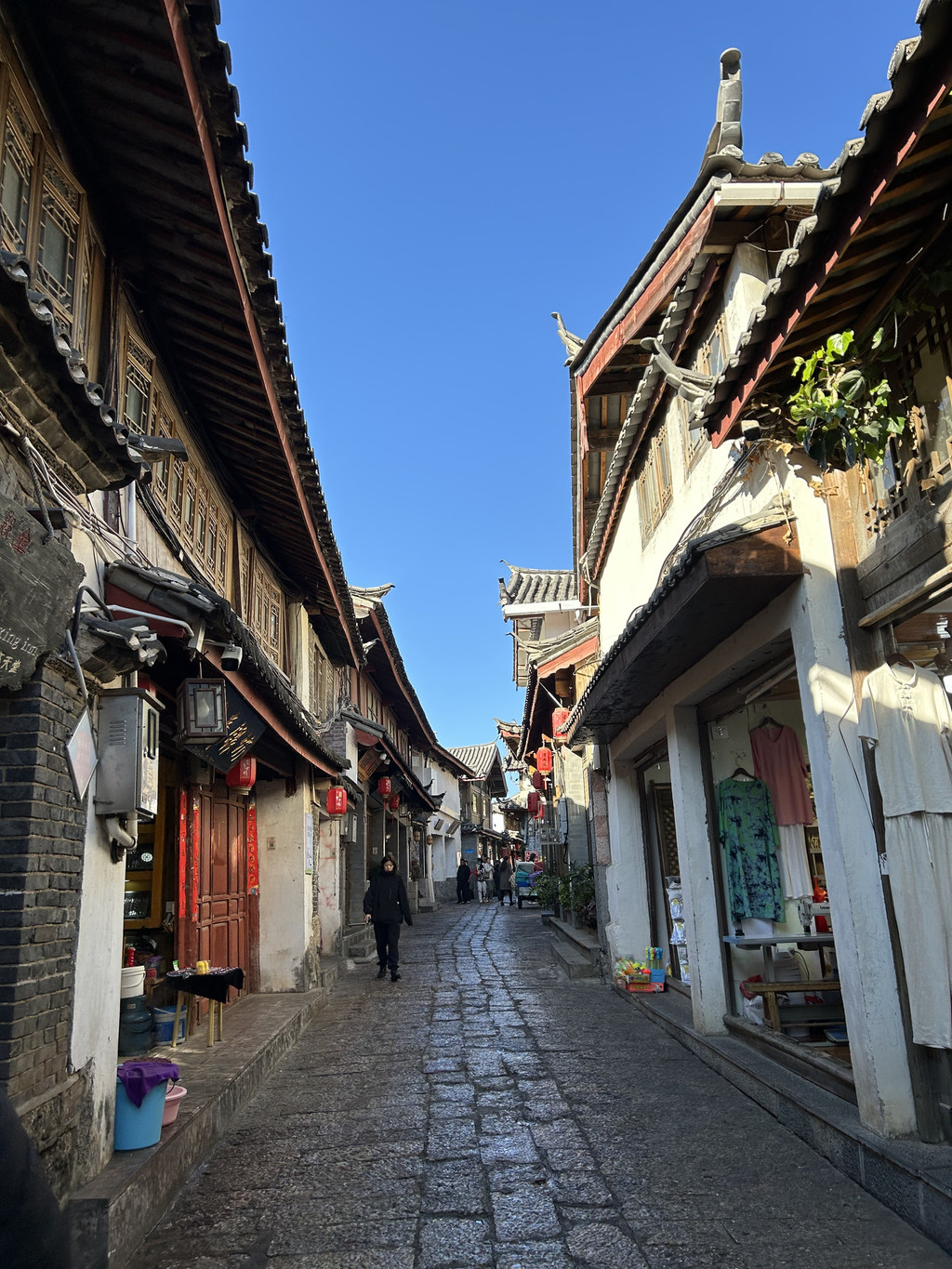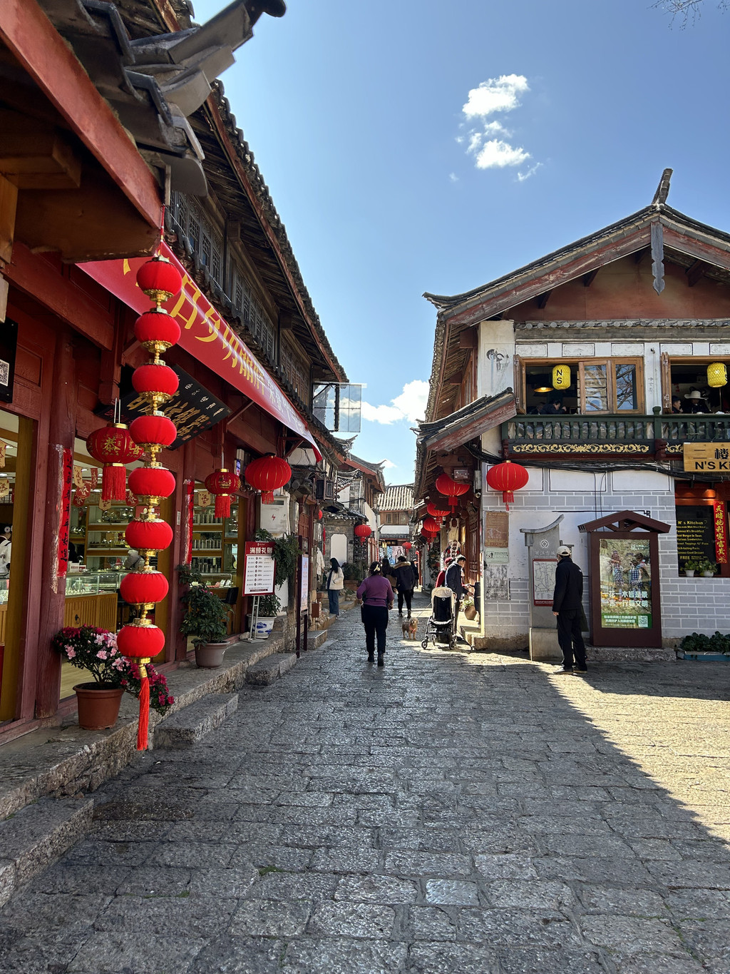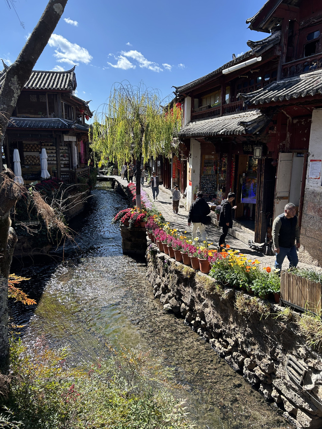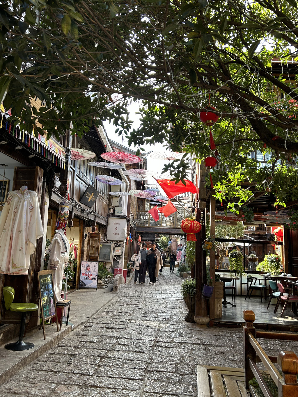 漫步在古城的街道上,眼前呈现出一幅古朴,典雅,幽静的画面。纳西风格的民居鳞次栉比,清清的溪流穿城过巷,一座座小桥如彩虹横跨小溪,排排垂柳在清风中摇弋。