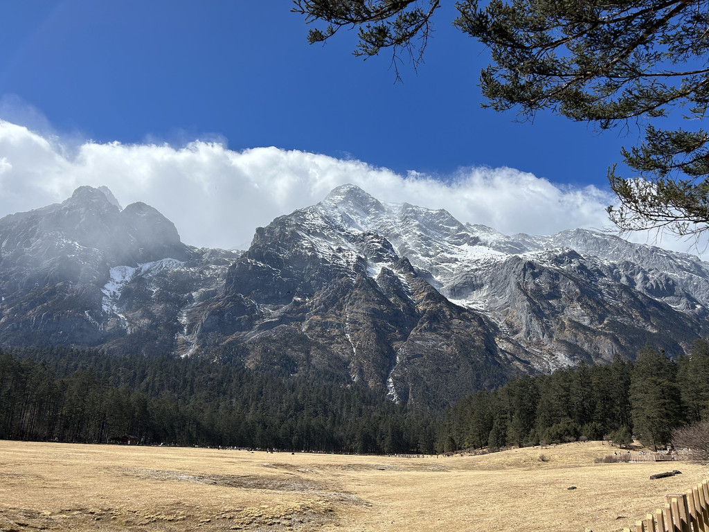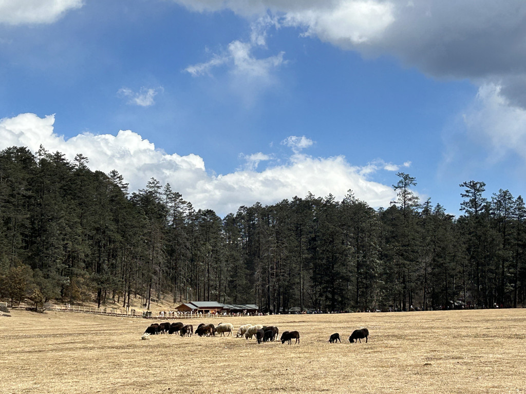 乘索道到达云杉坪,这里海拔3240米。因为带孩子没能登上雪山,但在云杉坪大草坪上近距离看雪山、草坪、牛羊……也是超级美的,漫步高原草甸,随便一拍都是佳作。