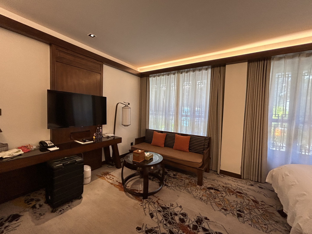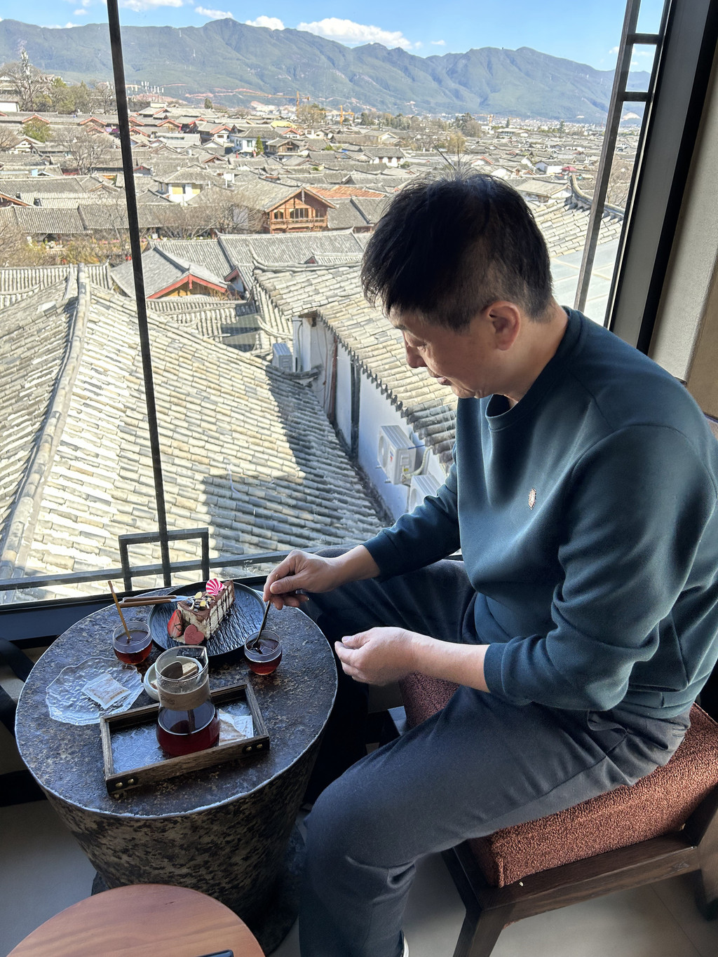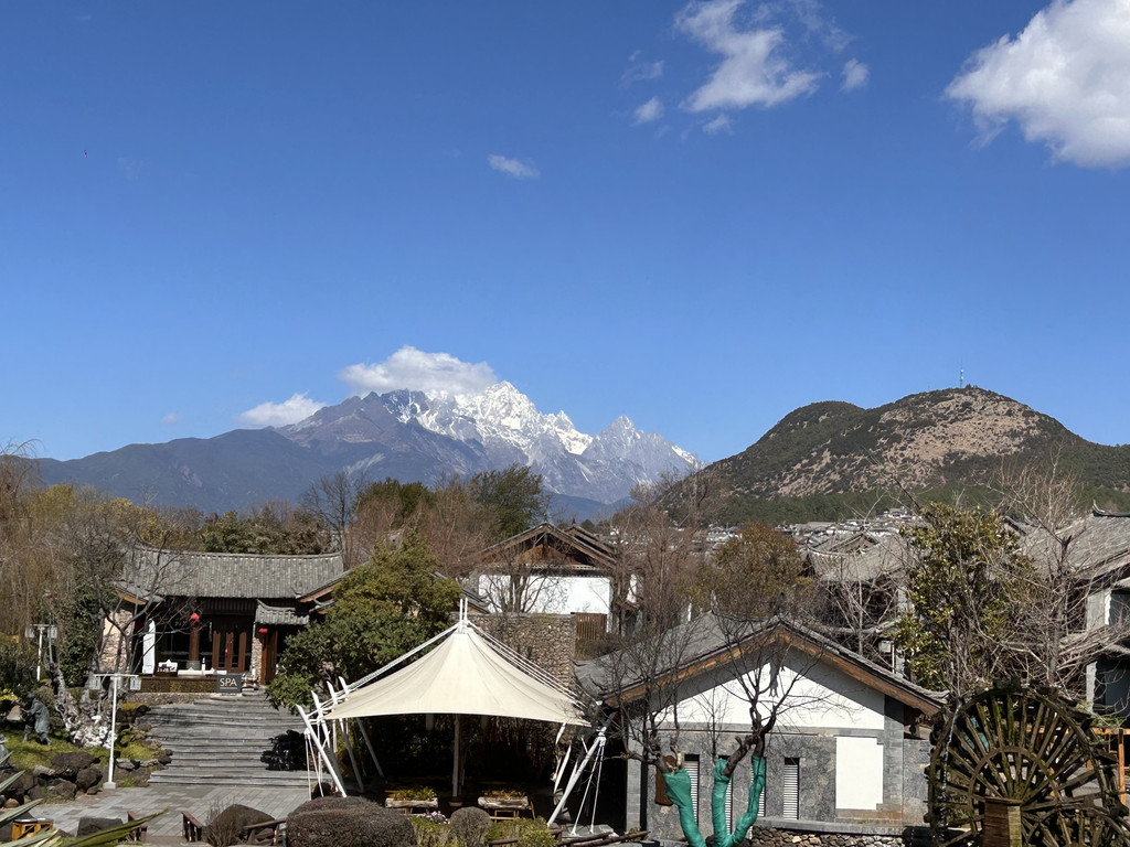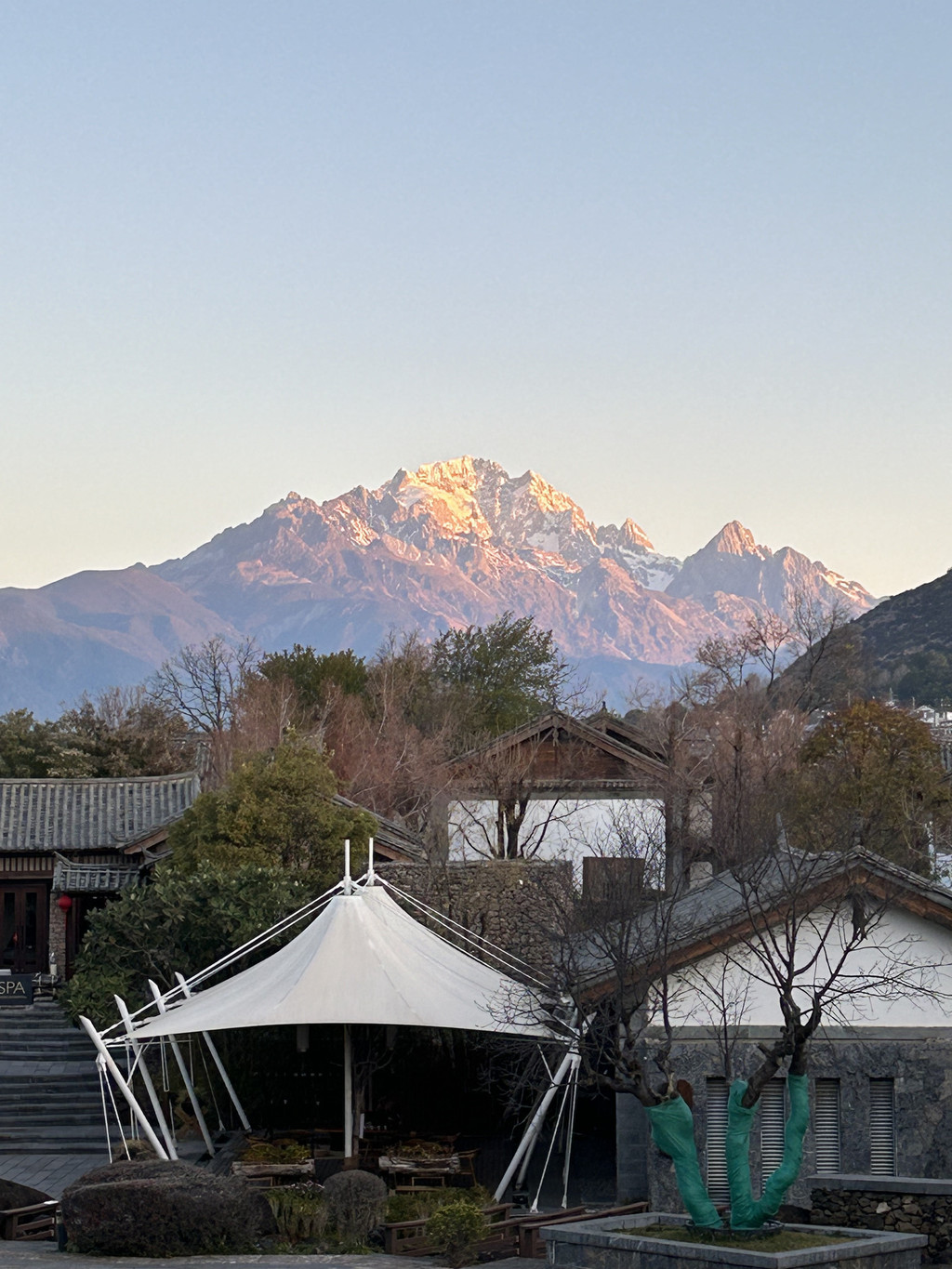 当晚,入住丽江古城和府洲际度假酒店。站在酒店大堂茶室,向远眺望,便可以看到远方那雄伟壮观的玉龙雪山。