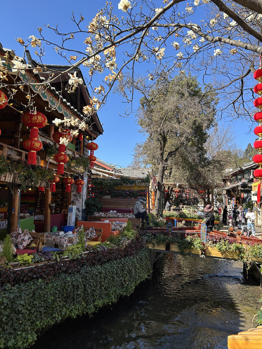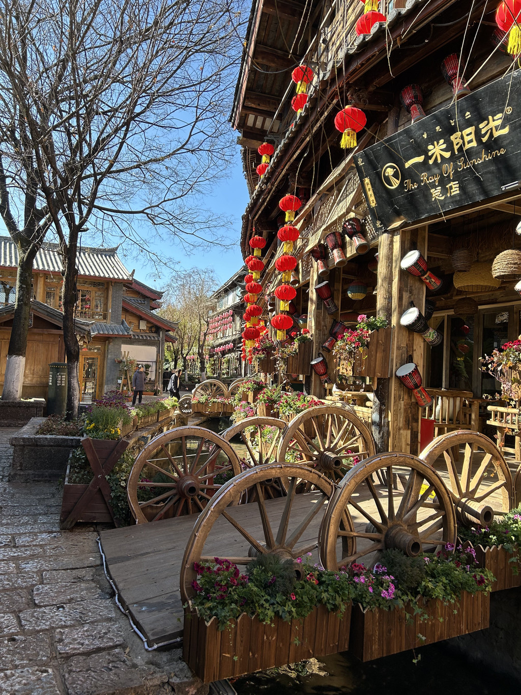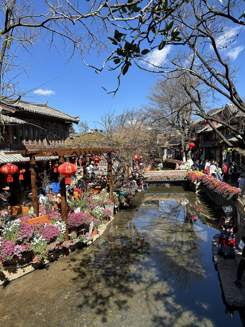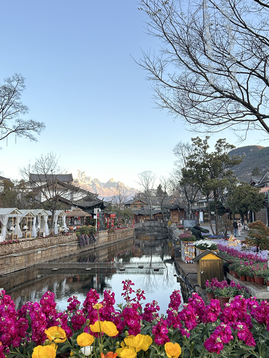 开满鲜花的丽江古城的美景真的无处不在,大水车、四方街,大石桥花海、大研花巷、樱花餐厅、五一街、文昌宫……如同一幅精心绘制的画卷,将自然的美丽与人文的精髓完美融合。