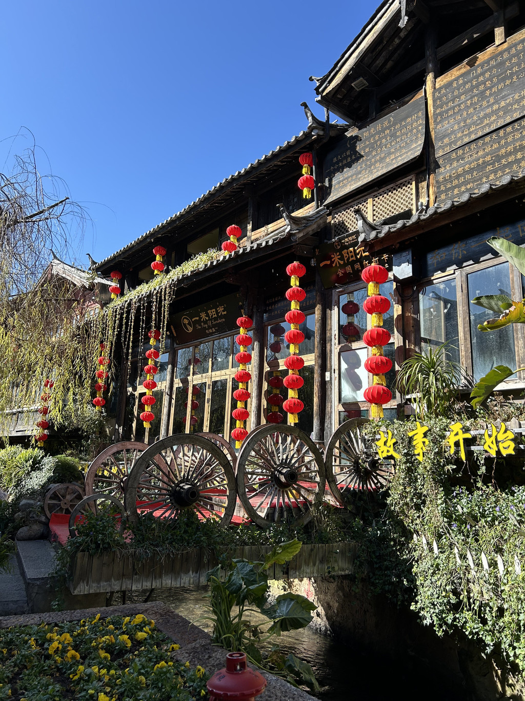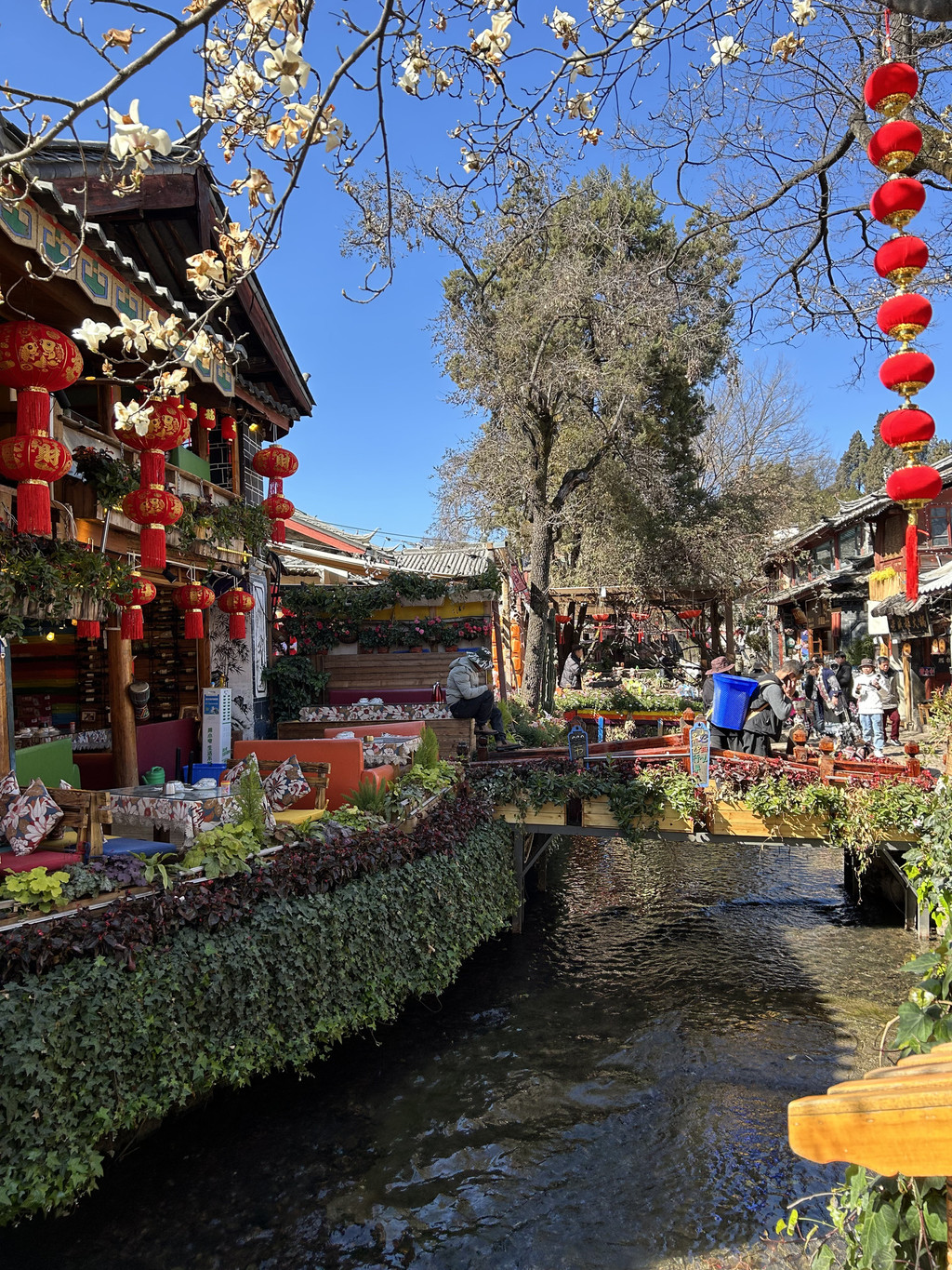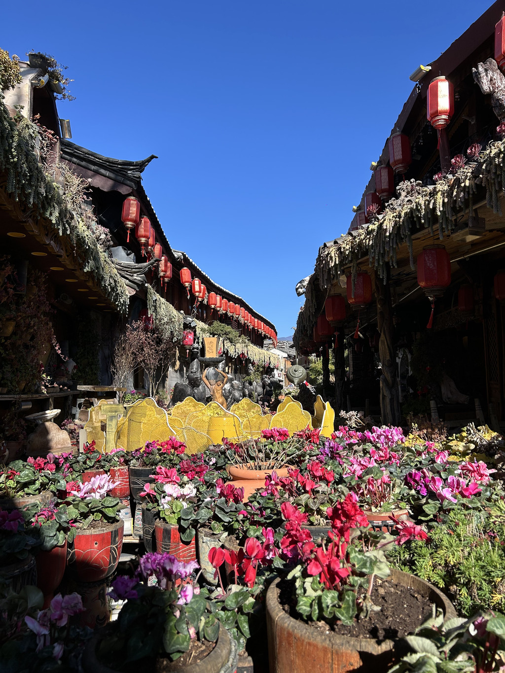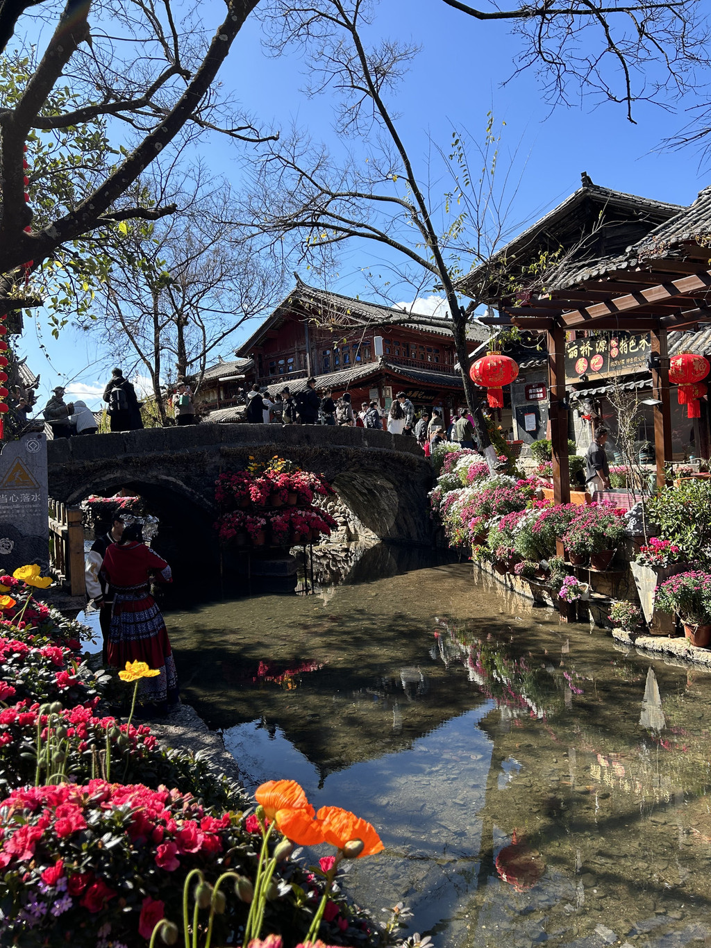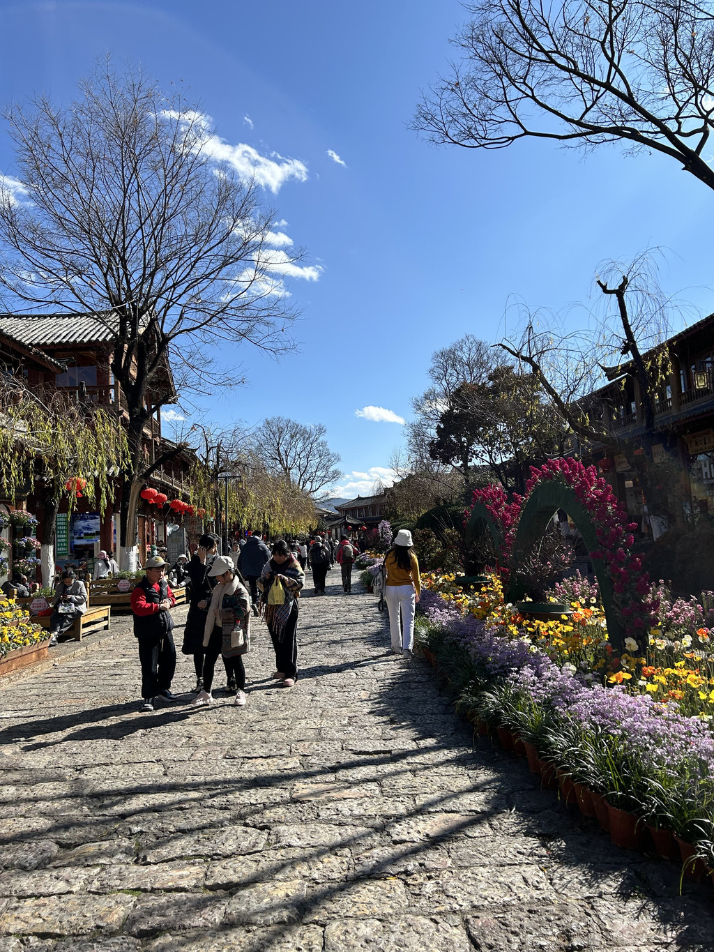 开满鲜花的丽江古城的美景真的无处不在,大水车、四方街,大石桥花海、大研花巷、樱花餐厅、五一街、文昌宫……如同一幅精心绘制的画卷,将自然的美丽与人文的精髓完美融合。