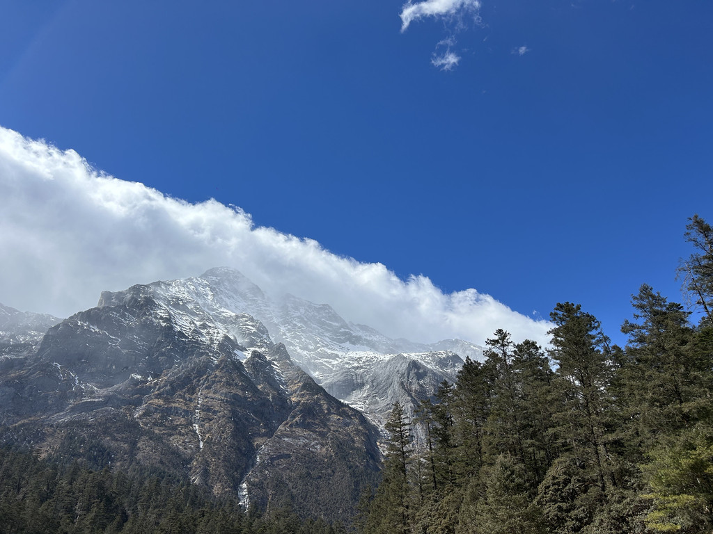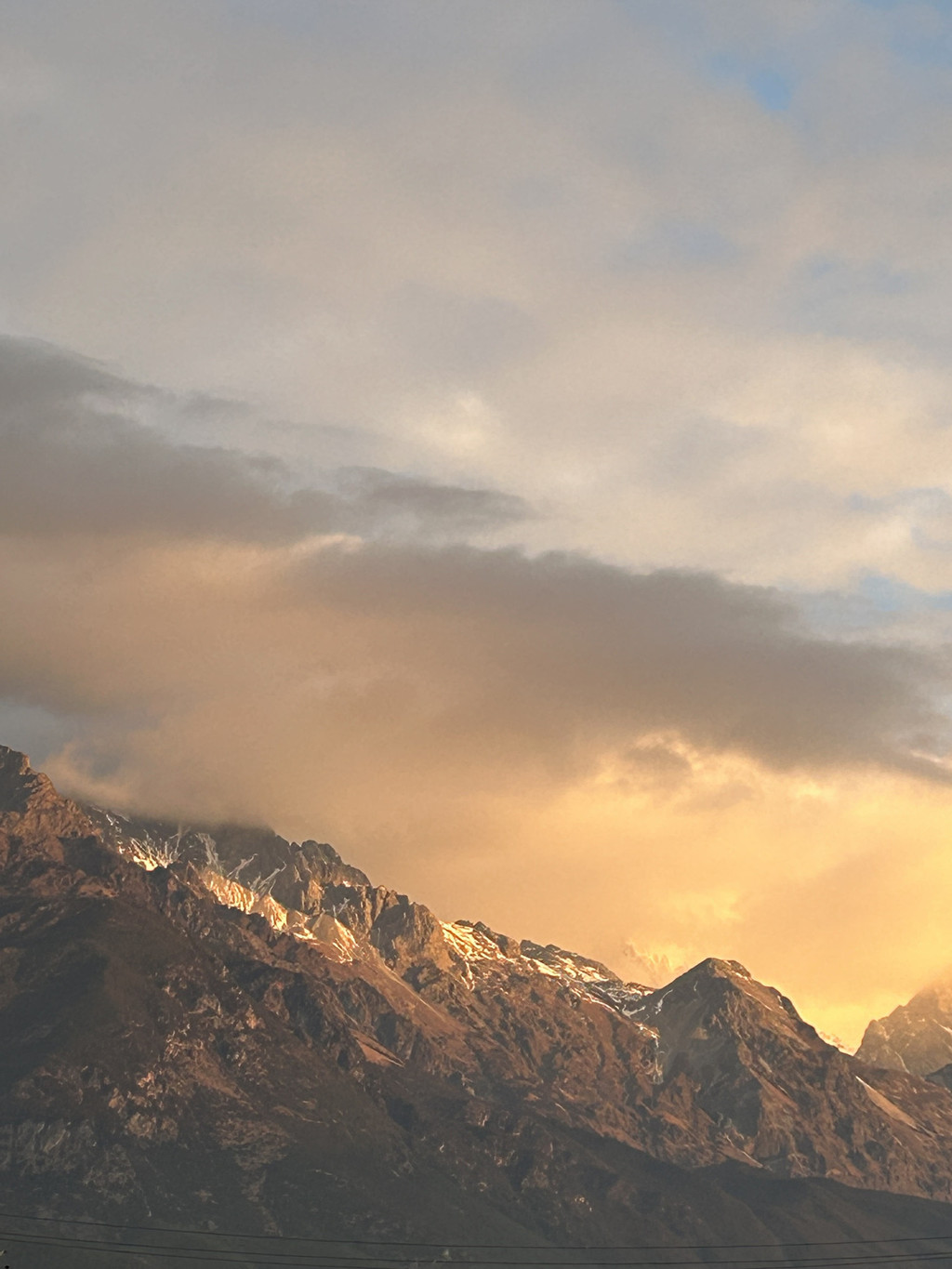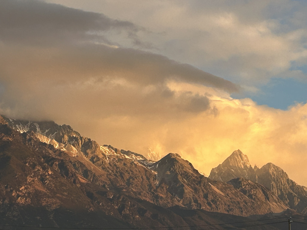 第二天清晨8:00拍到的日照金山,虽然雪少了一些,但是依旧那么美。