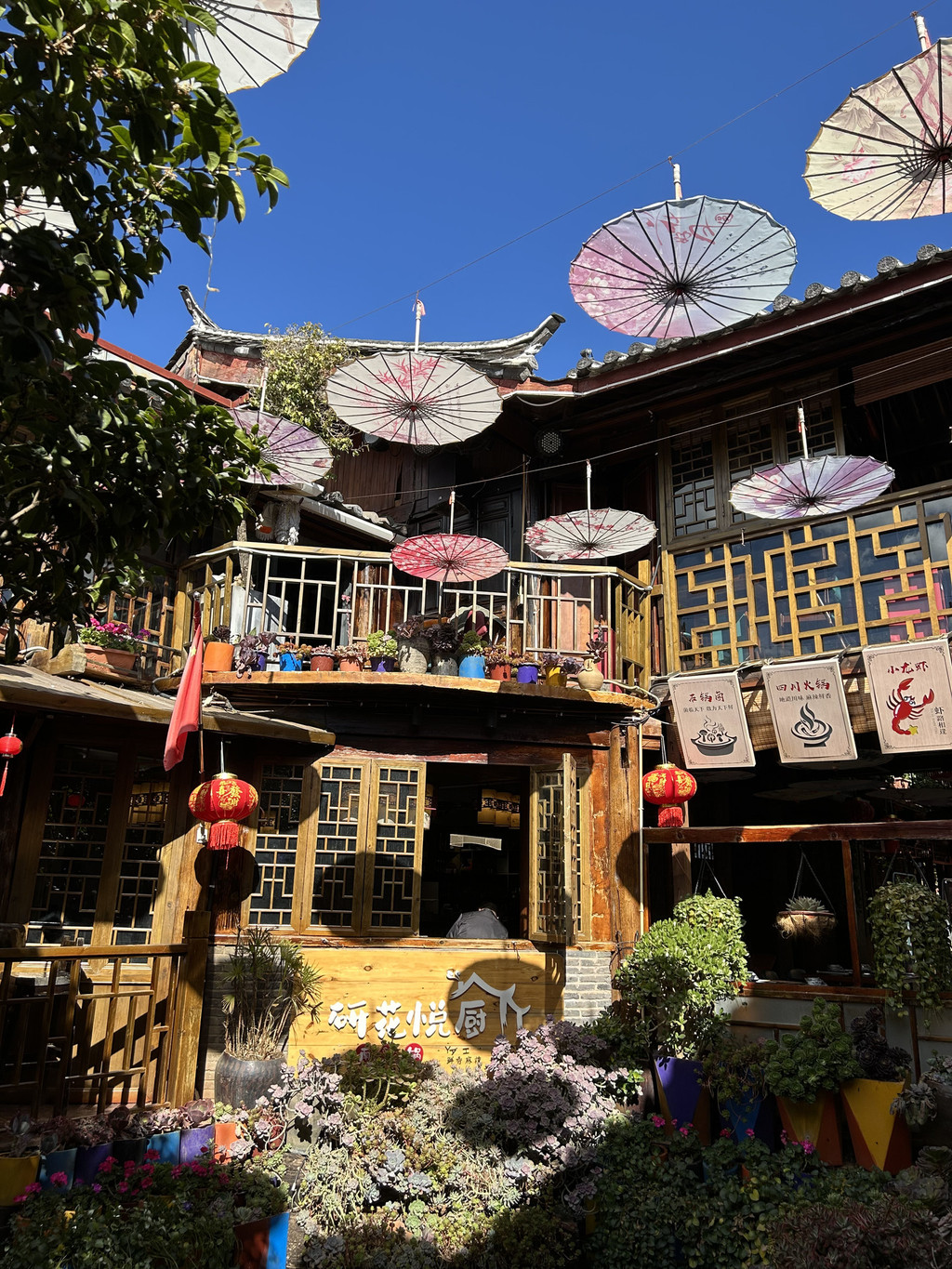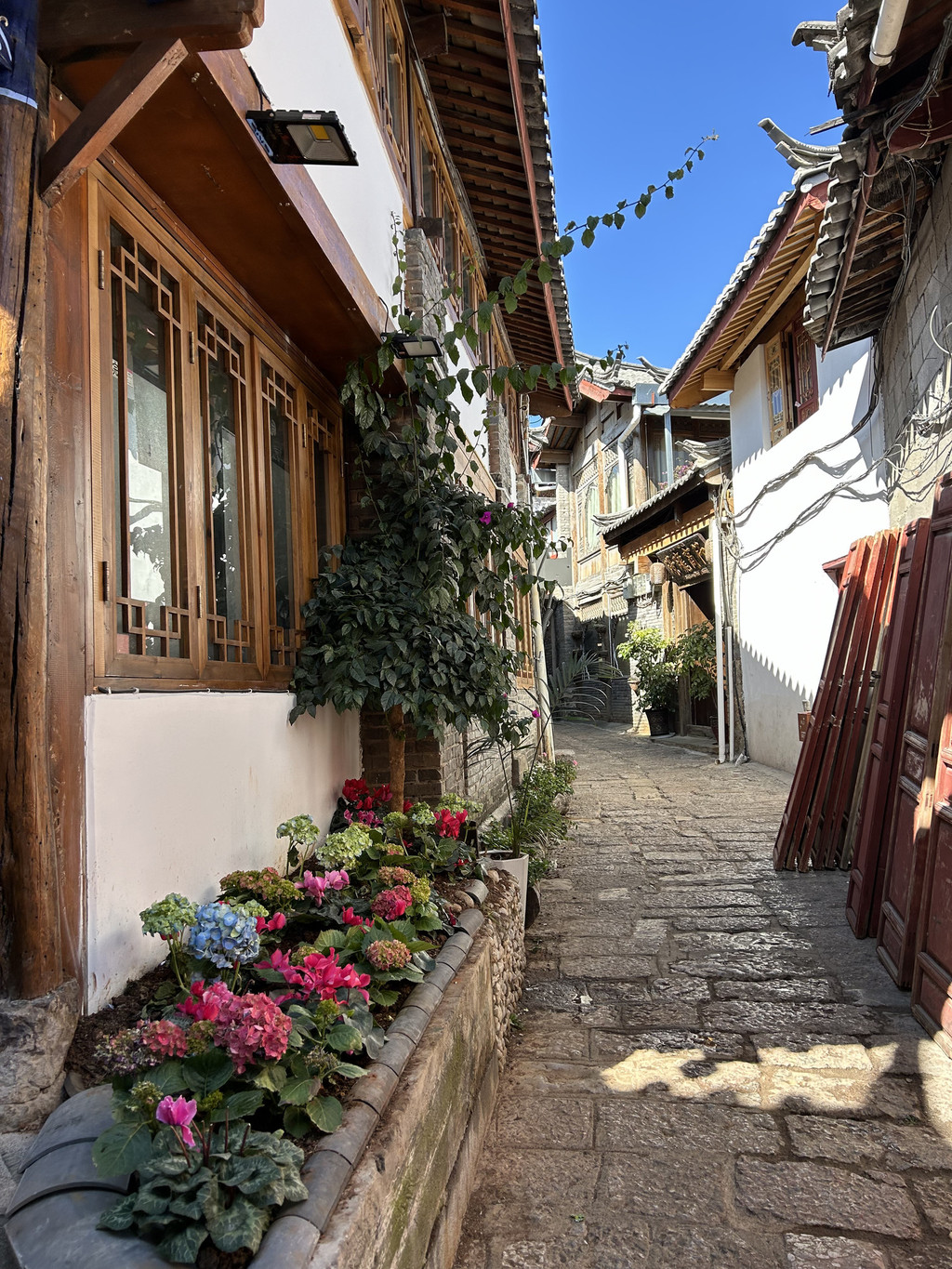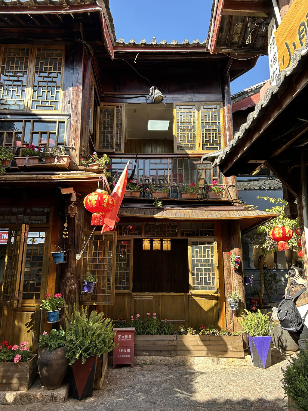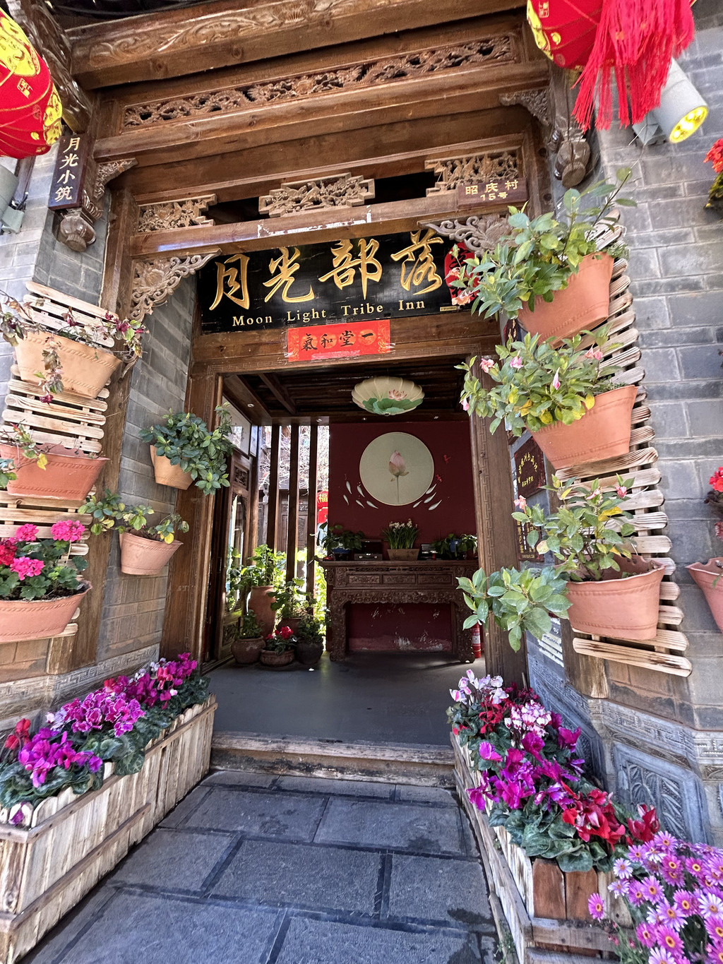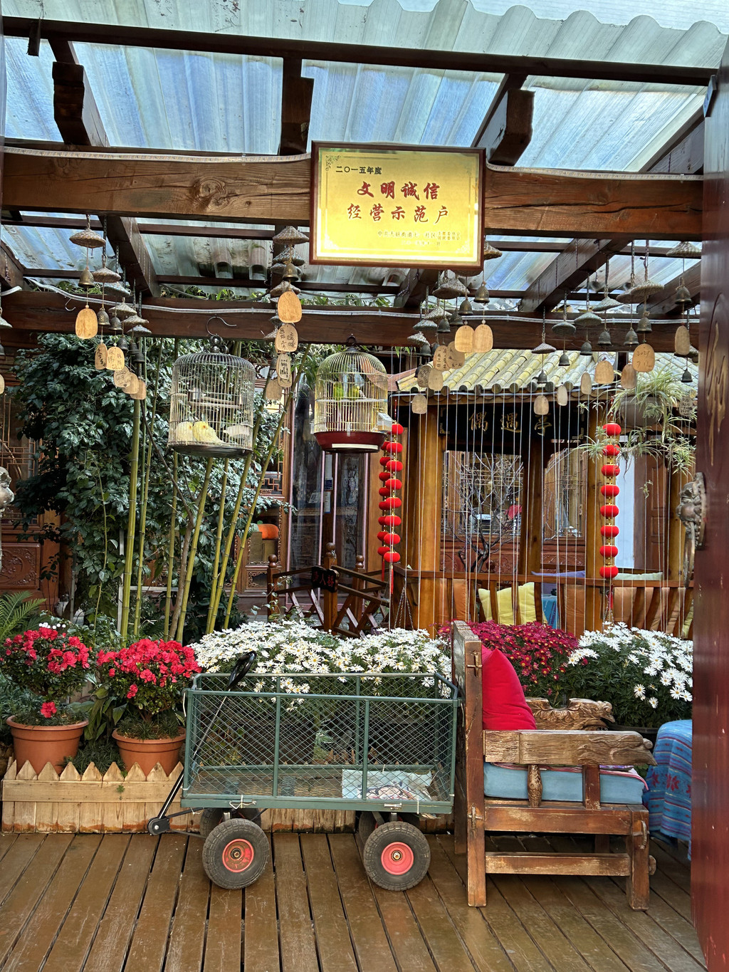 随意走进一家客栈,古色古香的木屋,庭院的每一个角落都点缀着鲜花,装饰巧妙精致,给人一种置身花园的感觉。