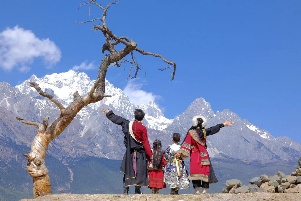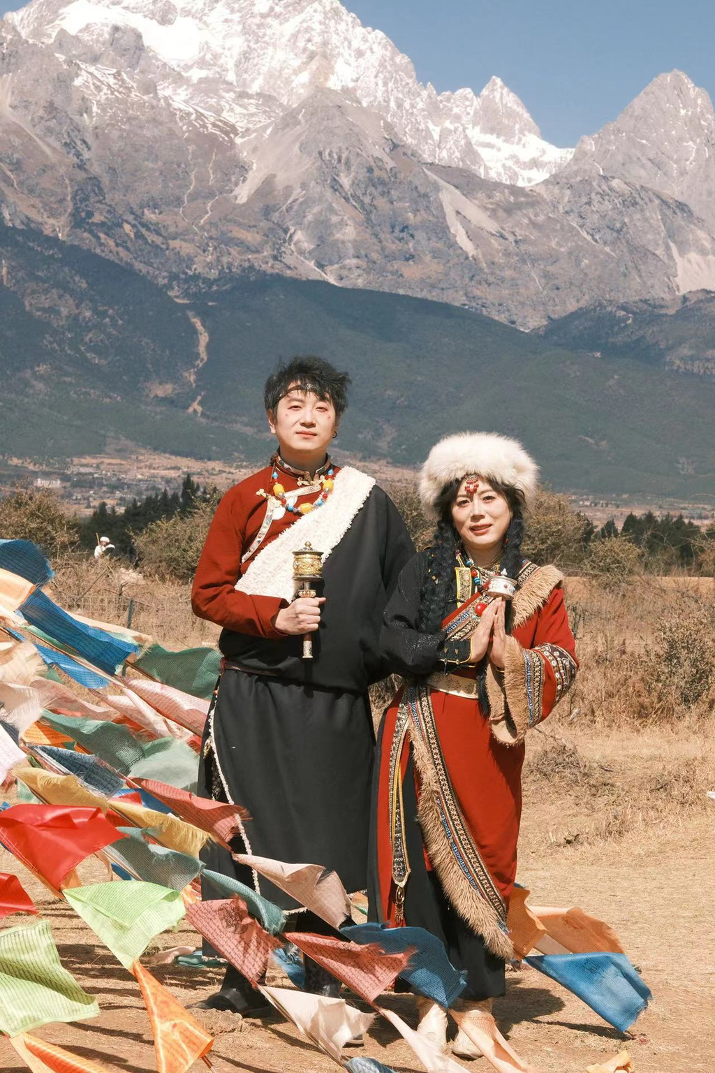 梦幻生活,爱在旅途。天蓝云白,儿子一家挑好民族服装、扮好风情妆饰,在此定格这个美好的时刻。