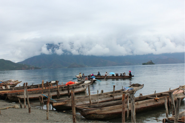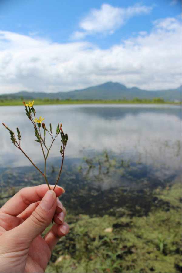 到达泸沽湖 ,湖面上飘着的花叫做水性杨花,近看根在湖水底部,而花浮在水面,故得此名。