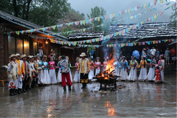 晚上看了摩梭人家的篝火晚会,虽然下着雨,但是还是气氛很好。。。。