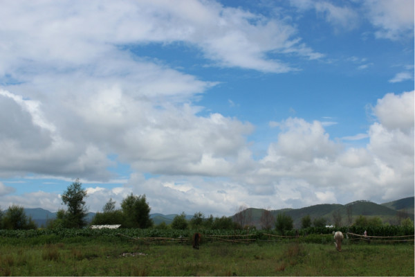 白沙 两三个小时就逛到头了,载我们的司机又带我们去了雪山马场骑马哦,天气微微放晴,小小的草原让我有了新的体验。