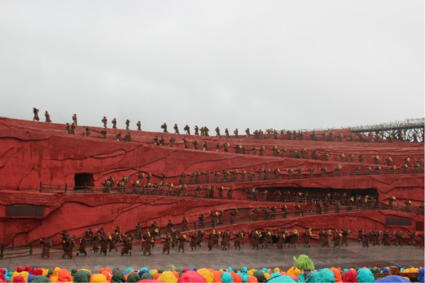 那天天气很不好,连后面的雪山都不明显,还下着雨,但是表演真的值得看,很壮观,很震撼。