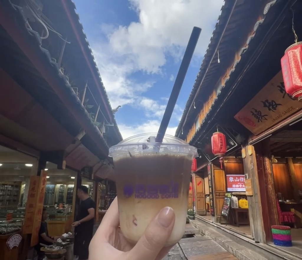 束河古镇北门不用买门票可以直接进点了一杯玫瑰拿铁云南小粒咖啡