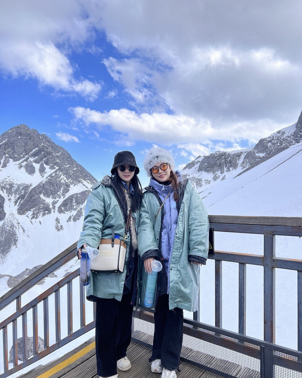 先坐大巴到大索道Q,排长长长长队上山,上山时间还是比较快的,在雪景上面穿过还是很漂亮。