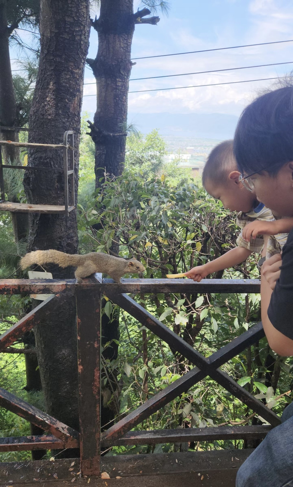 本想去云上草原喂动物的,都开到了门口,同样因为下雨!放弃了工作人员说天气不好,放出来的动物也不多,而且它们也会避雨.犹豫了一下还是放弃了。临时转战舍利庄园,在山上的位置,只知道能喂小松鼠,到了才发现非常惊艳!风景无敌,而且小松鼠很多,孩子们都超级喜欢。有最低消费35$/人,但正好在这里解决午饭,味道也还可以。还有住宿的房间~下午打卡了路极!