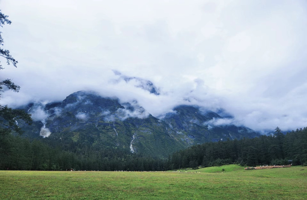我们去的时候一直在下雨,云杉坪缆车面也不需要排队太久,做观光车进去时稍等了一会。但大巴车来的很快,每辆车容量也大,所以等待时间还好。直接坐到云杉坪索道处下车,索道距离不长,下了后走一小段栈道就能到拍照打卡地。