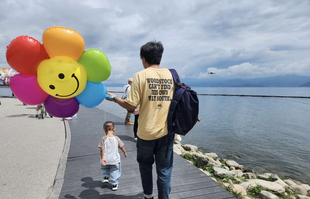 逛:去了大理古城,的确大同小异,赶上下雨,孩子踩水比较开心才村码头,风景不错,再往旁边景区内可以租电动车观光啦,推荐大狗狗的,速度快,小三口可以期,还能连蓝牙30/半小时。我们是傍晚去的,温度刚刚好,风景超级美