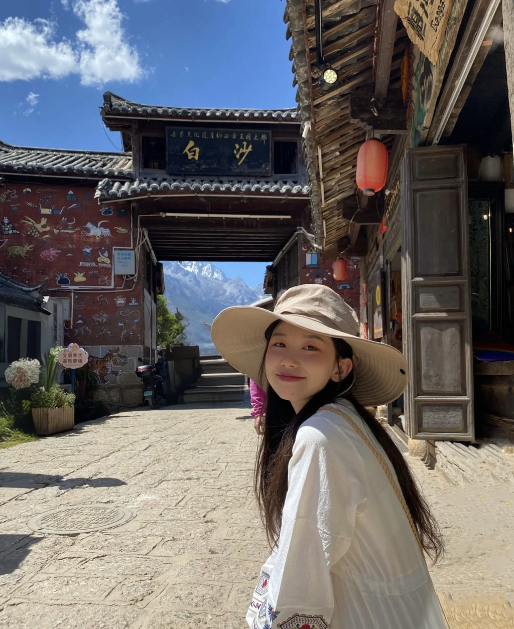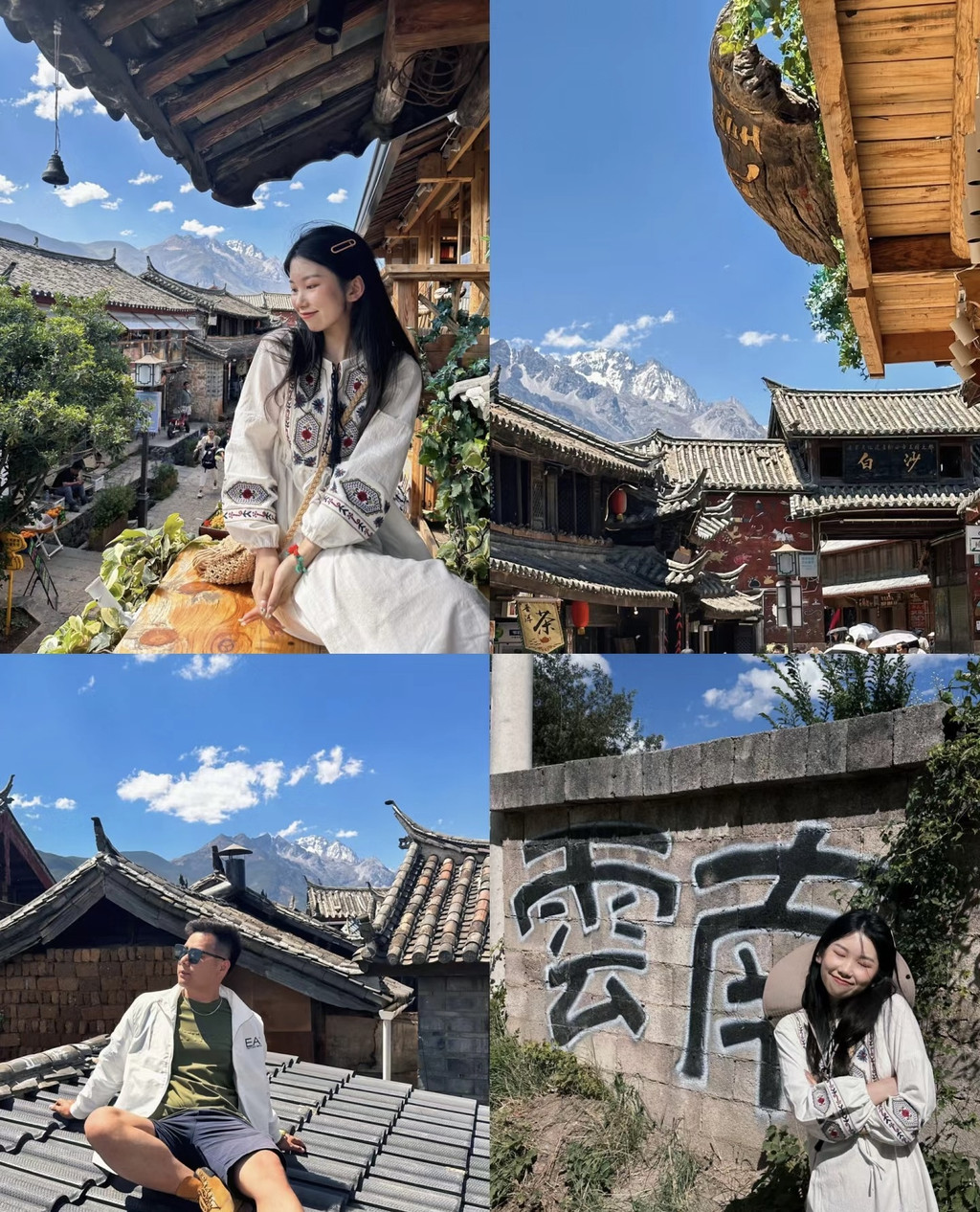 白沙古镇,镇子就能看到玉龙雪山,打卡了雪山和屋顶