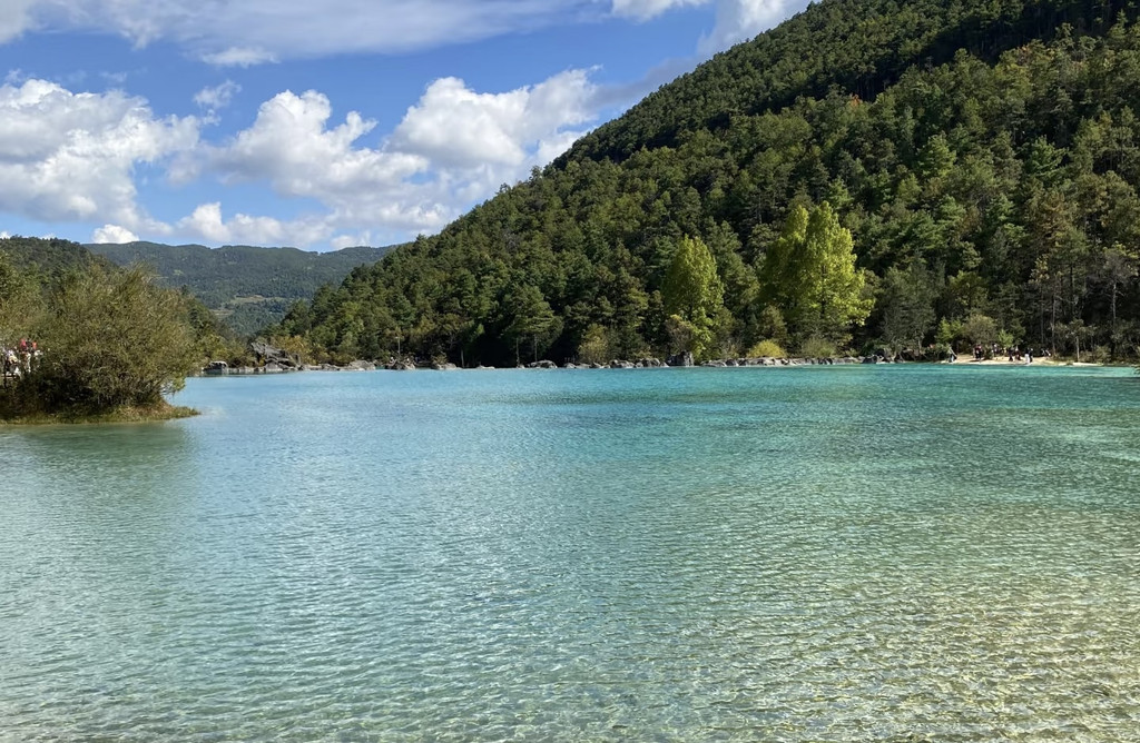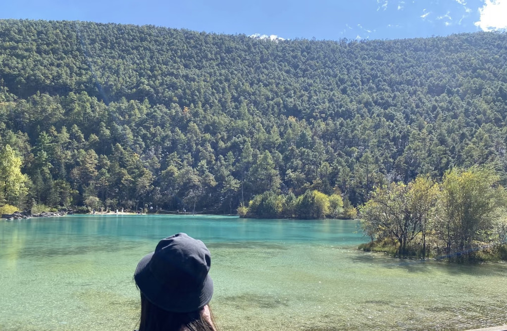 分钟后景区再检查进山费,准备身份证,没有的话输号码也行再约10分钟到达游客中心,中小索道台阶上楼,跟大索道不同方向→10点40左右到达索道检票,总用时大概1个小时左右(预约索道的时间可参考这个→乘坐大巴到达索道入口,大巴一直都有,很快能上车→排队上索道,这里人很多,会有点慢→小索道3分钟左右就到山上了 选择栈道步行或乘电瓶车到云杉坪,是两条路线,电瓶车啥风景不知道,但是900米完全不需要坐车(身体不适的除外),慢慢走欣赏沿途风景在云杉坪绕一圈逛完大概用时1个半小时,就再回索道口处排队坐索道下去在大巴候车处等车到蓝月谷水阅阁下车游览蓝月谷,逛了1个小时后就回程,都有指示,前往大巴乘坐点,回到游客中心(1/2号停车场,3号停车场终点站就是一开始上楼梯的游客中心)