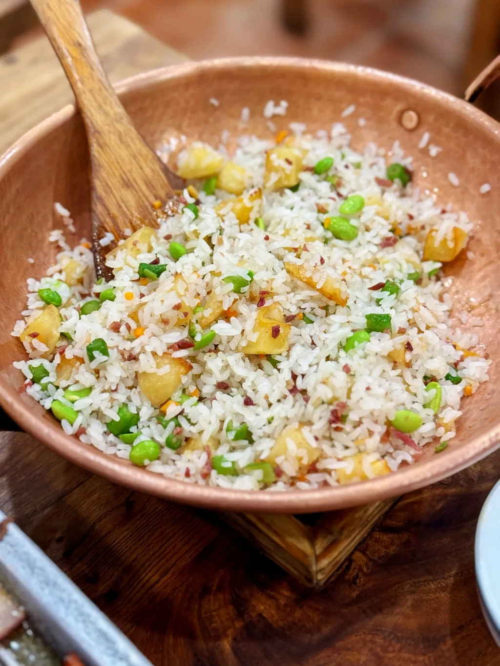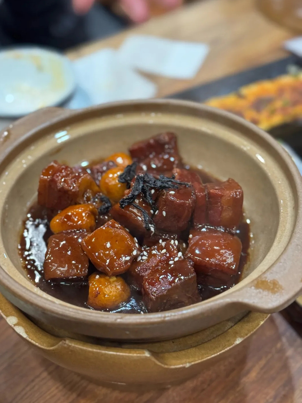 招牌小锅饭点了小份,里面的配菜很丰富,土豆很面,好像还有火腿碎。椰香泡鲁达 椰奶很浓郁。白普洱茶红烧肉做的很精致的红烧肉,完全不腻很下饭。点炝板水性杨花菜很嫩很入味。点铁板香煎豆腐 包浆豆腐上来的时候会呼吸,外焦里嫩。傣味包烧菌菇包烧是当地做法,菌菇很嫩,下饭好吃,铁板小黄牛 不辣~牛肉也很嫩。