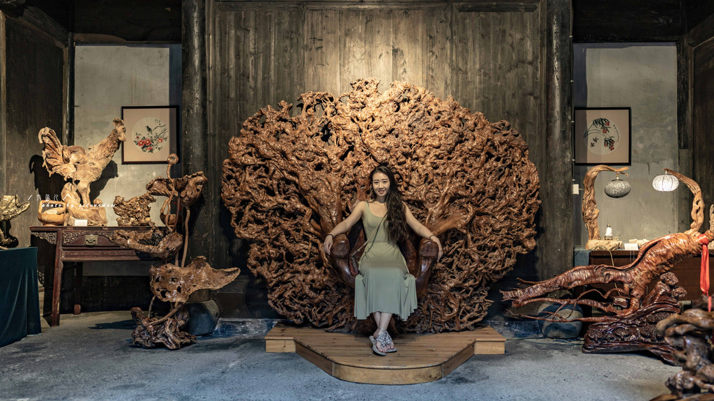 南门弄是昌化记忆里最民间最民俗的部分,而这座浙西民俗文化展陈管——昌化根艺便建于此,这里更是魅力昌化的非遗文化, 一截截枯兜树根,经艺人的人,一摆弄便成了墨宝。