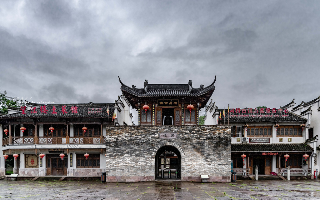 在柳溪江边的河桥古镇乃浙西边城,唐昌首镇,这是一座千年古城,处于古徽州境内,传承了徽州文化,古镇的建筑也是典型的徽派风格,白墙灰瓦。