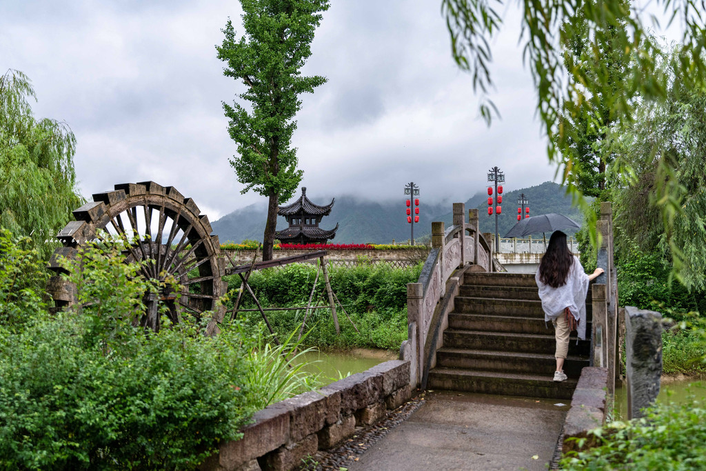 在柳溪江的身后,还有一座状元桥,撑着雨伞走过这小桥流水,江南的天气,总是雨天比晴天更有诗意。