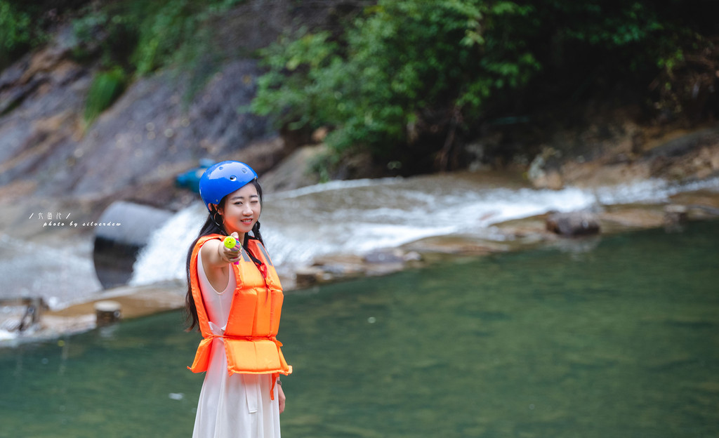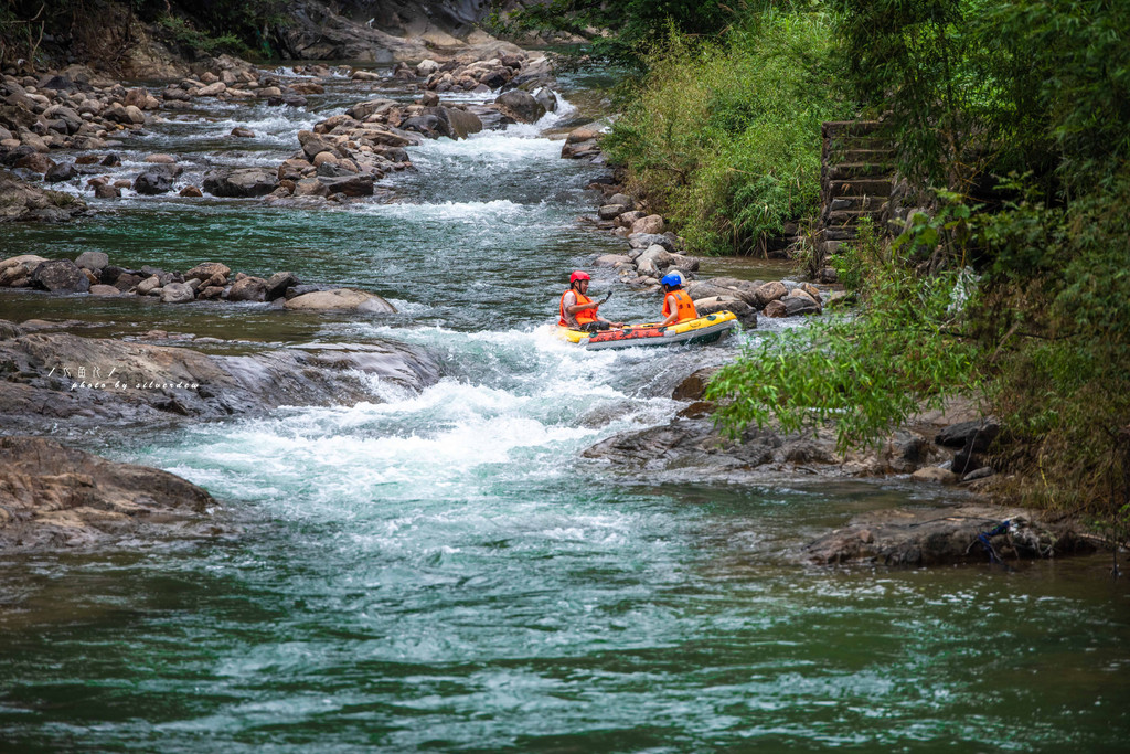 享受皮划艇任凭溪水冲打的刺激,更享受在这酷暑难耐的夏日,溪水湿身的凉爽,看着两岸树木丛生,刺激中又多了些许浪漫,