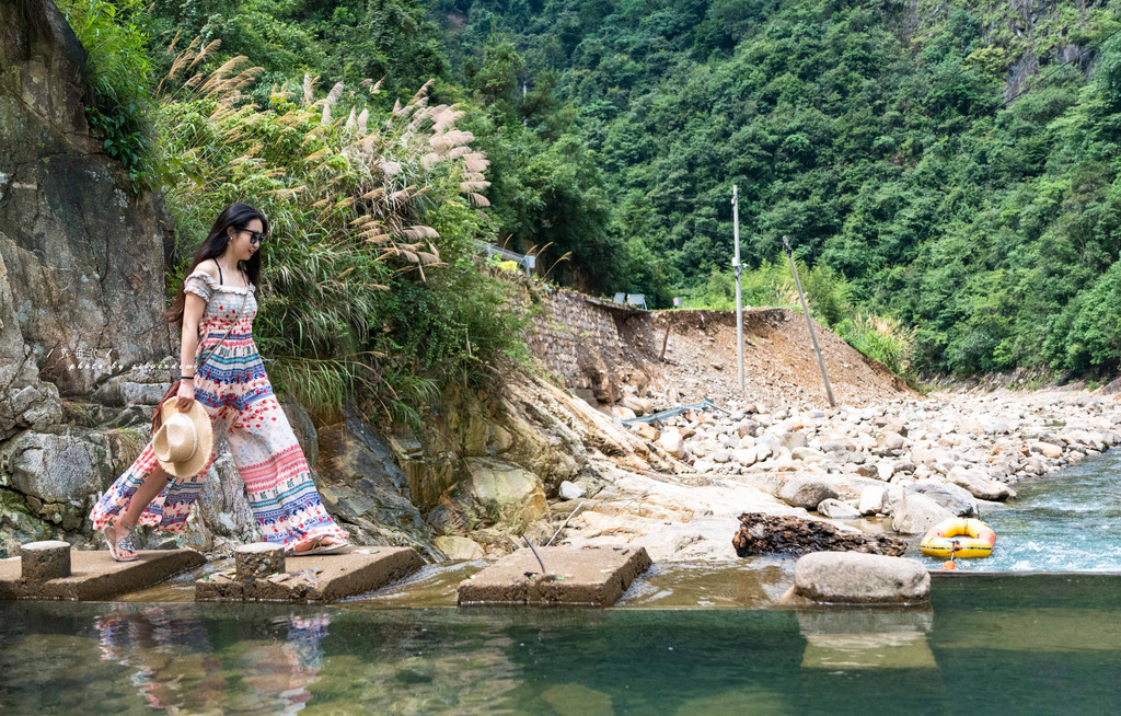 漂流周边生态优良,两岸山峦起伏,峡谷纵深,绿树成荫,风光旖旎。河道原始河床露面,水质清澈见底,游鱼可数。建设漂流项目的自然禀赋得天独厚,而且这条溪被众多驴友们认为是临安最适合做激情漂流的河道。