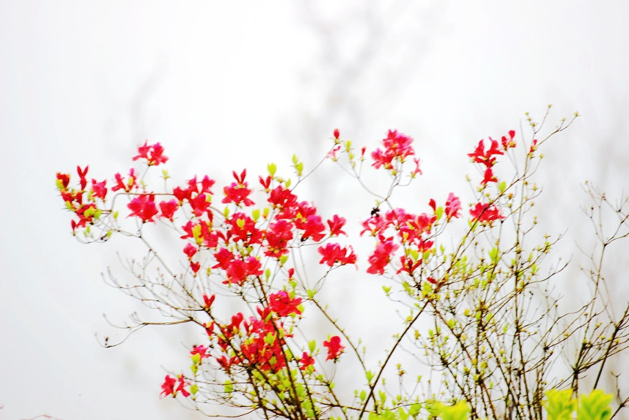 雾里看花,晨雾里的野杜鹃花,非常漂亮。这里青山绿水,空气清新,不是仙境,胜似仙境。